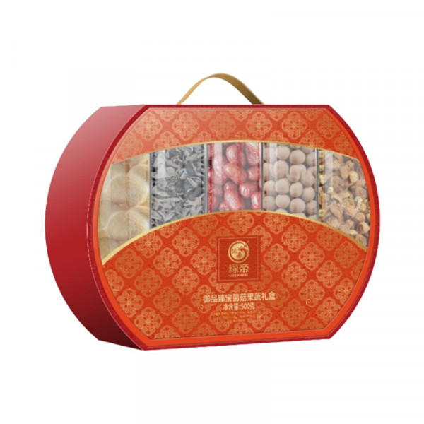 (巨邦佑)T+绿帝御品臻宝菌菇果蔬礼盒500g(猴头菇45g、细云耳90g、楼兰枣180g、桂圆干130g、姬松茸55g)