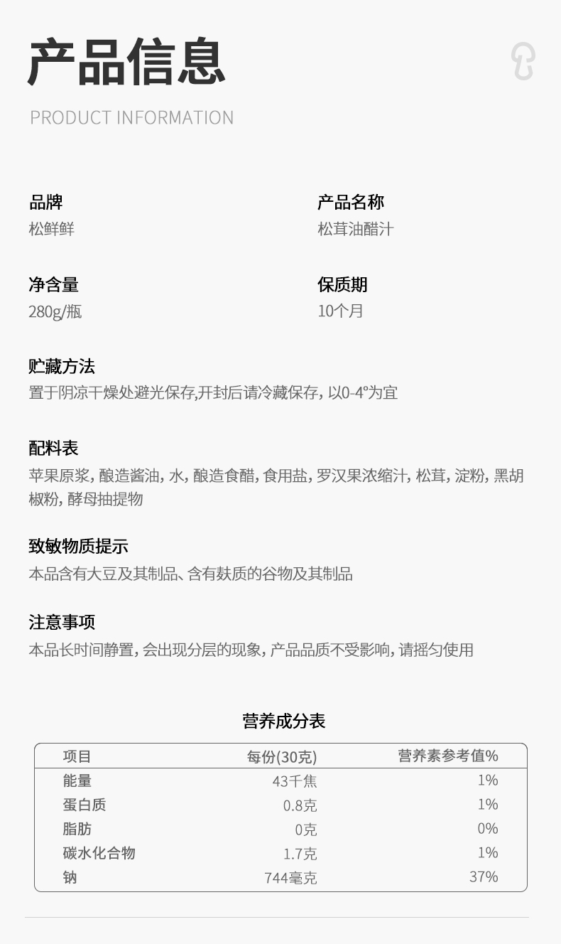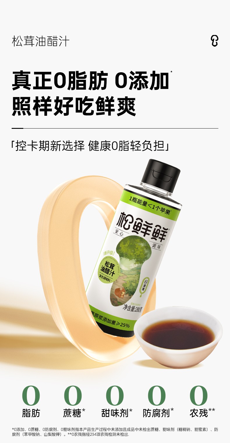商品名称:(超运·禾贸)松鲜鲜松茸油醋汁经典口味280g*5.【SXX0002】 松鲜鲜松茸油醋汁0脂肪蔬菜水果沙拉健身餐沙拉汁低脂酱料