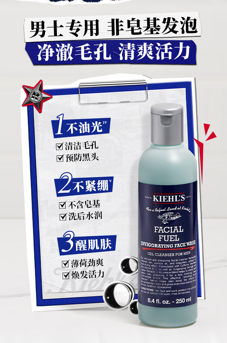 (巨邦佑)BJ+科颜氏男士焕活洁面啫喱250ml 洗面奶男士清洁