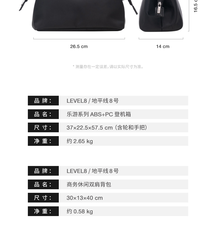 商品名称:(中合誉品)地平线8号(LEVEL8)行李箱 拉杆箱休闲双肩包背包 大容量男女电脑包洗漱包组合套装 黑色