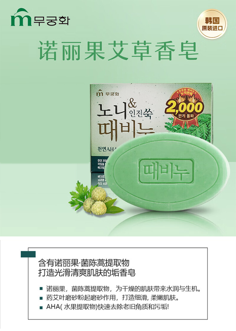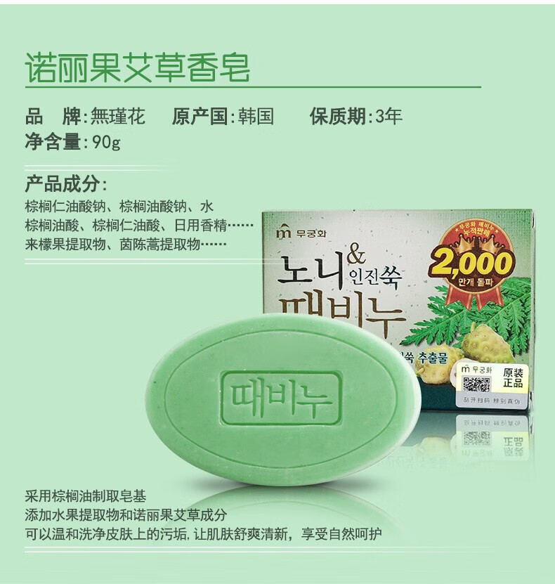 商品名称:(巨邦佑)BJ+無瑾花 诺丽果艾草香皂90g*4块 沐浴皂去灰皂清洁