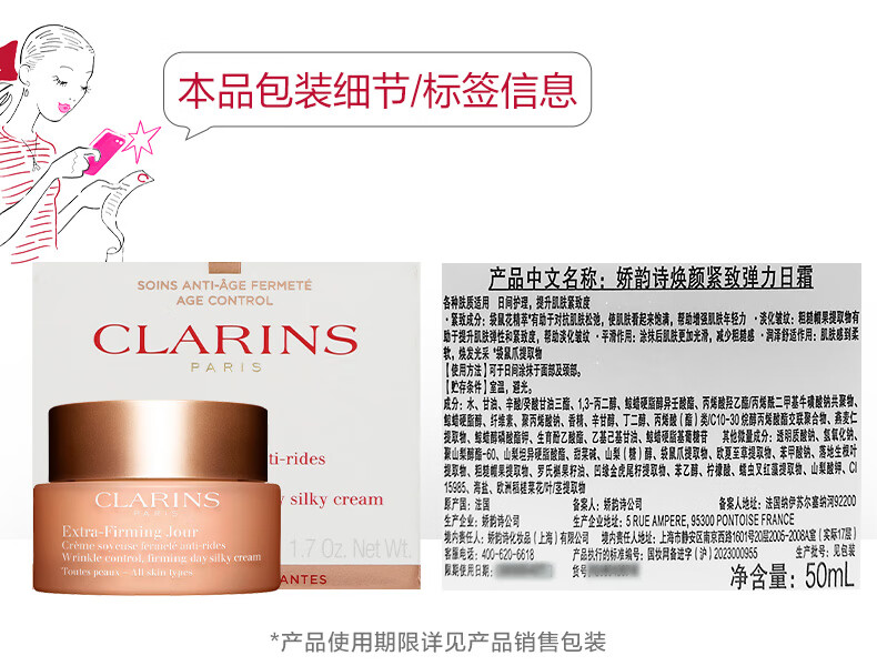 (巨邦佑)BJ+娇韵诗焕颜紧致弹力日霜50ml 面霜弹簧霜滋润补水抗皱保湿提拉弹润