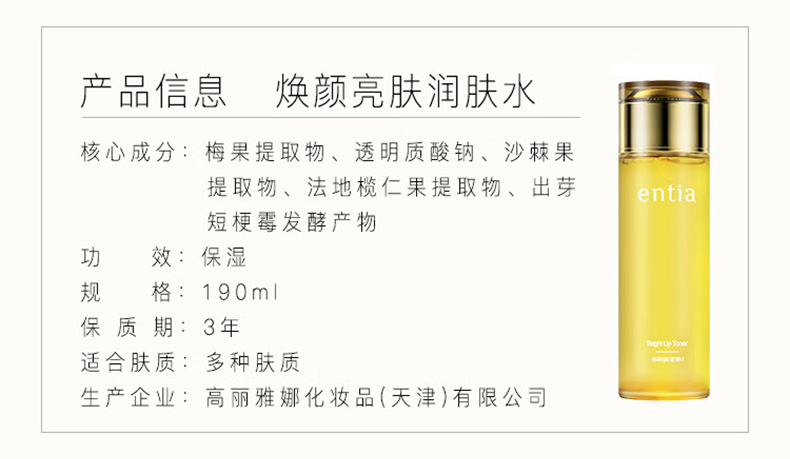 商品名称:(巨邦佑)BJ+恩沙焕颜亮肤润肤水190ml 焕亮保湿补水爽肤水