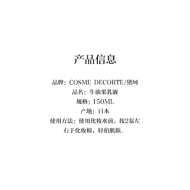 商品名称:(巨邦佑)BJ+黛珂牛油果乳液150ml 水油平衡补水保湿