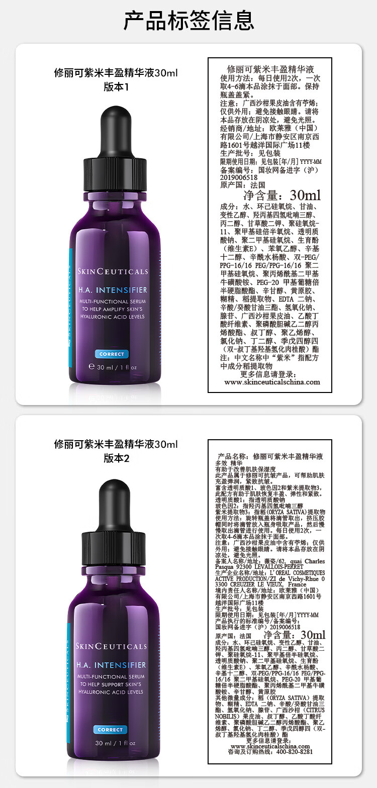 商品名称:(巨邦佑)BJ+修丽可紫米丰盈精华液30ml 玻色因抗皱淡纹抗糖老紧致