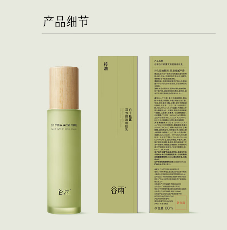 商品名称:(巨邦佑)BJ+谷雨白千松露双效控油细肤乳100ml 补水保湿乳
