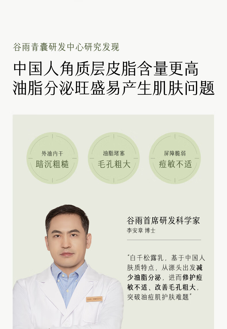 (巨邦佑)BJ+谷雨白千松露双效控油细肤乳100ml 补水保湿乳