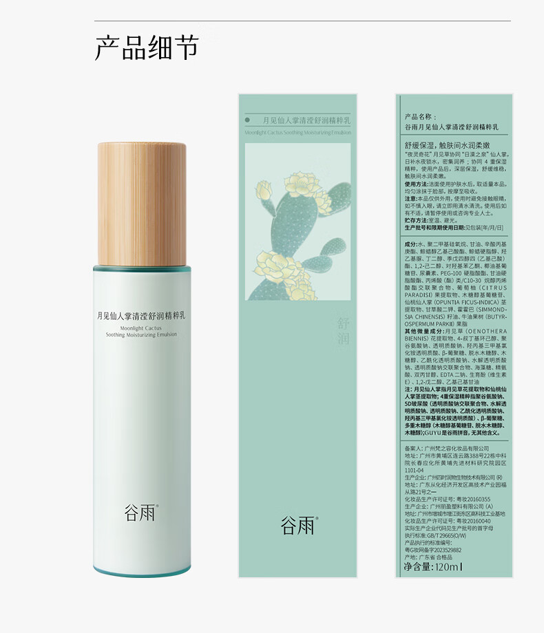 商品名称:(巨邦佑)BJ+谷雨月见仙人掌清滢舒润精粹乳120ml 补水保湿