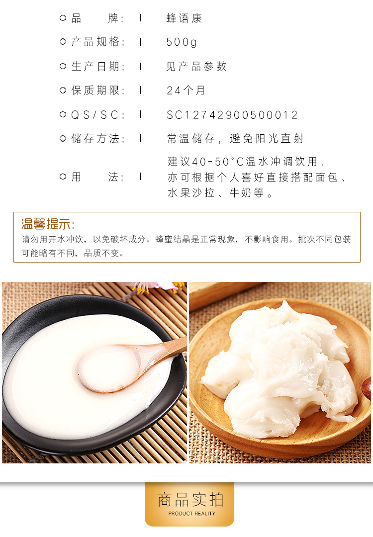 商品名称:(巨邦佑)BJ+蜂语康椴树蜂蜜500g 绵密清甜