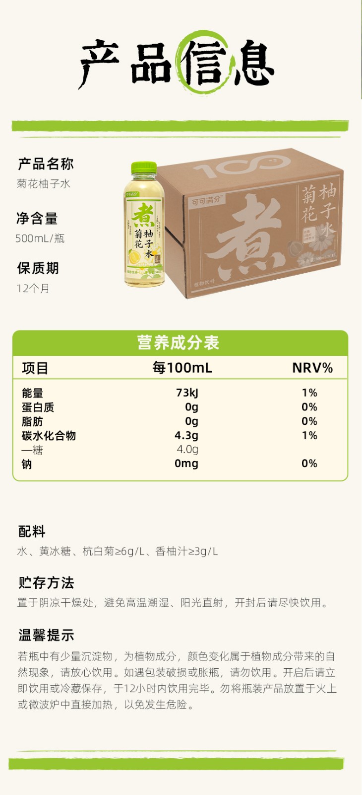 商品名称:(世星阳光) 可可满分 枇杷雪梨水*5瓶+菊花柚子水*5瓶 500ml瓶 中式茶饮 四季常备清润甘甜养身饮料
