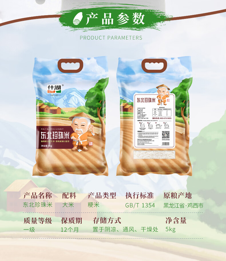 商品名称:(巨邦佑)R+什湖(SHIHURICE) 东北珍珠米5kg 长粒香米 煮饭煮粥真空包装 农家当季新米