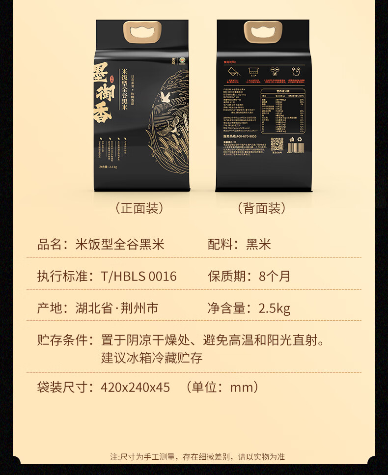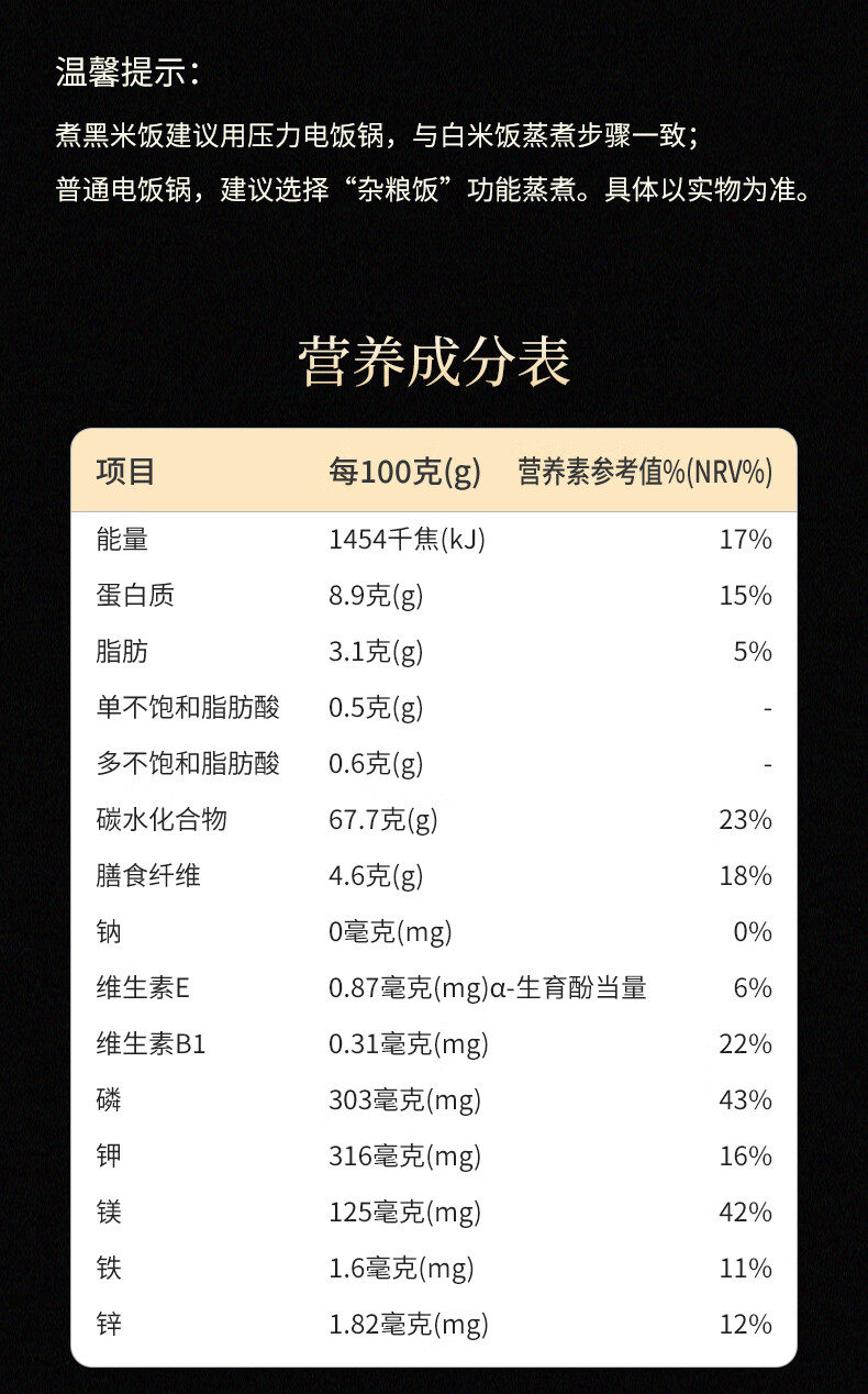 商品名称:(巨邦佑)R+ 优道墨御香米饭型全谷黑米2.5kg 香糯富含花青素 免浸泡 营养丰富