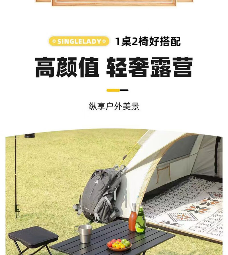 (巨邦佑)BH+飞图乐(FTLY)原木折叠桌凳套装-胡桃色ZDZD0100 一桌四凳户外露营家用便携式