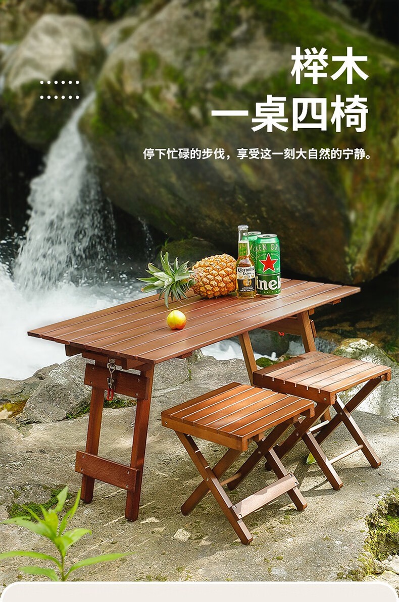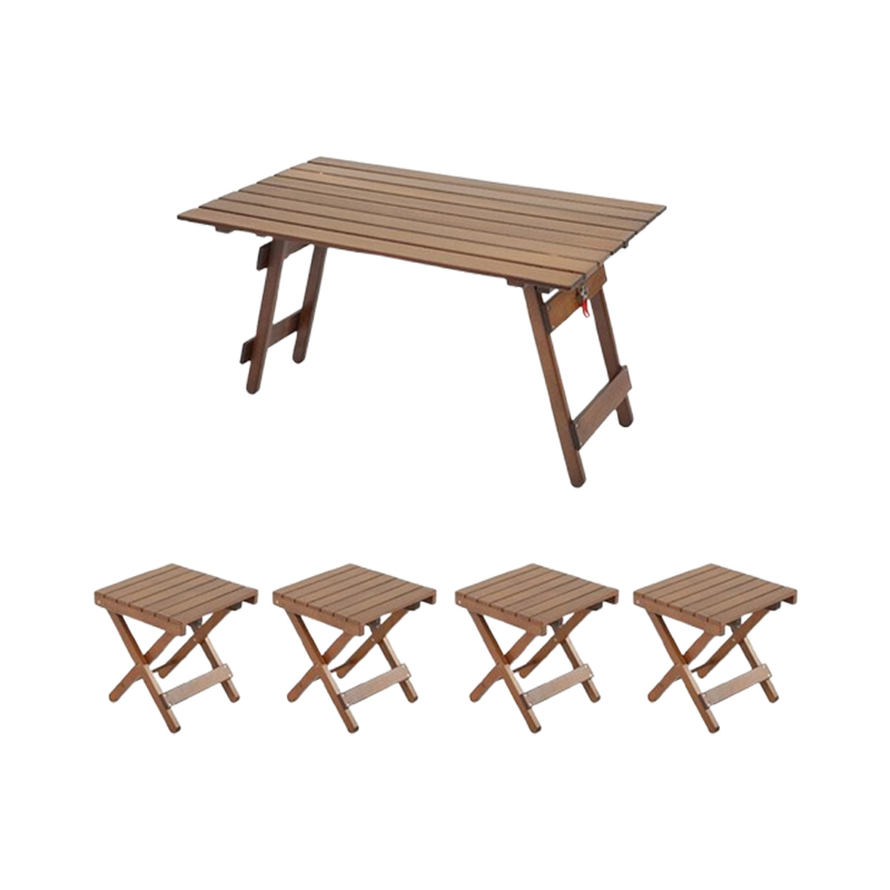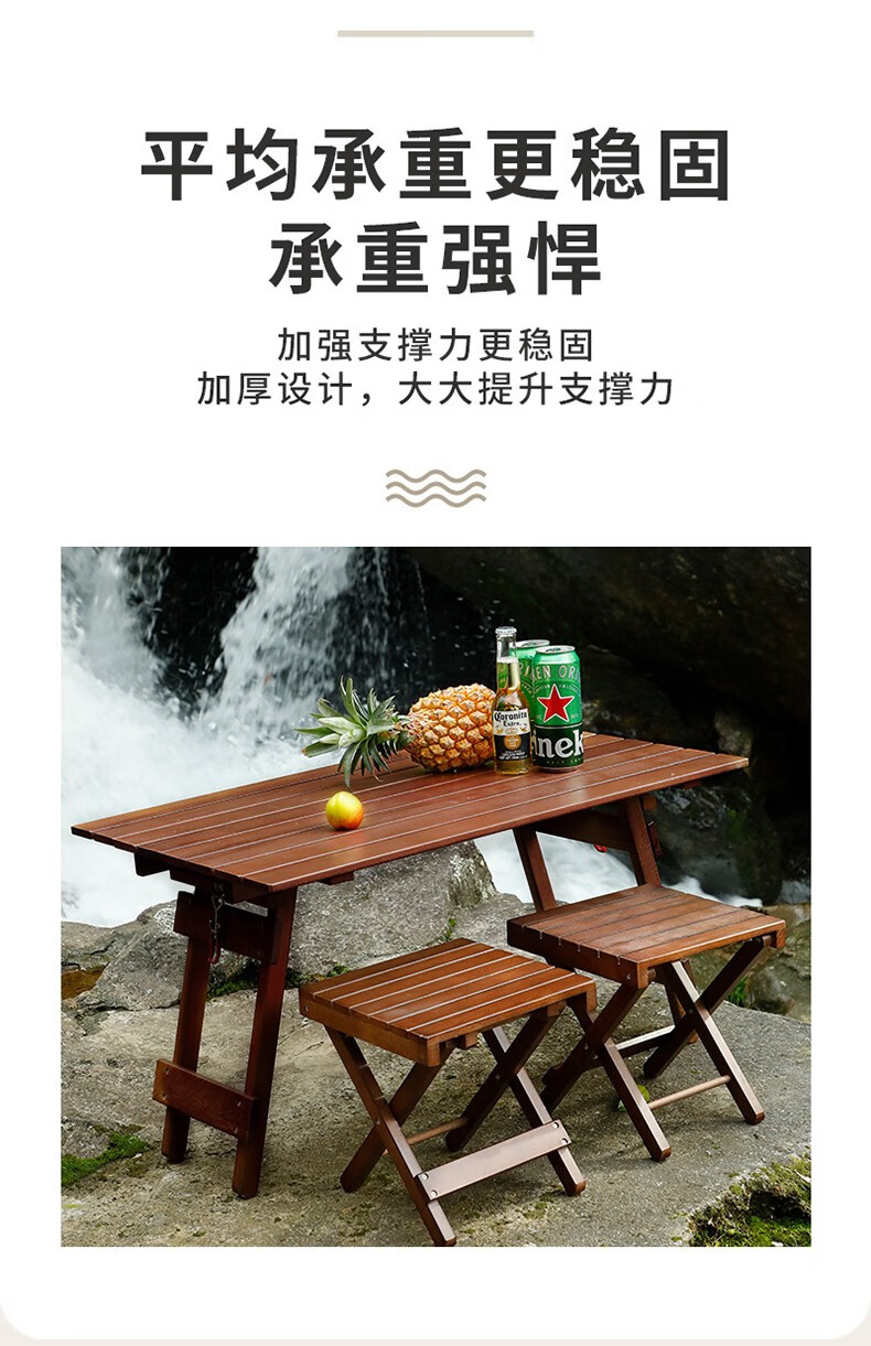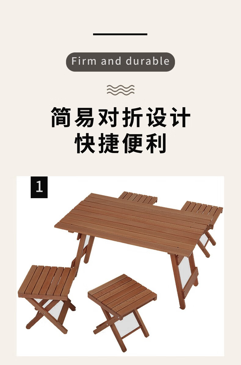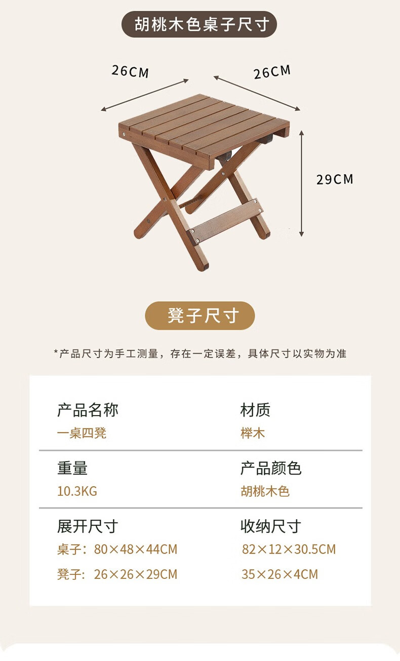 商品名称:(巨邦佑)BH+飞图乐(FTLY)原木折叠桌凳套装-胡桃色ZDZD0100 一桌四凳户外露营家用便携式