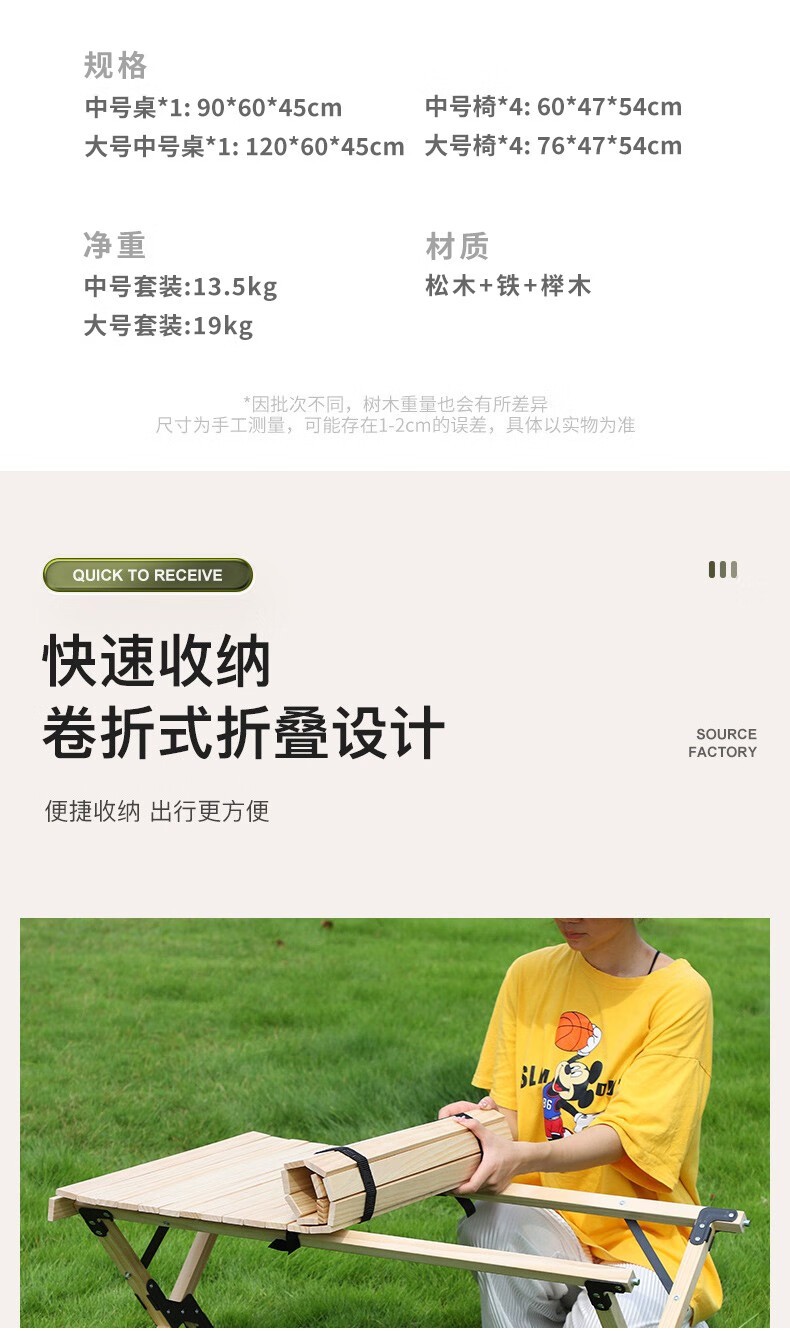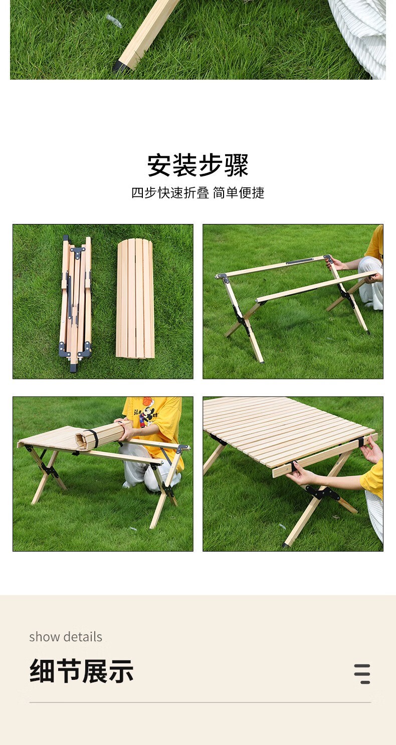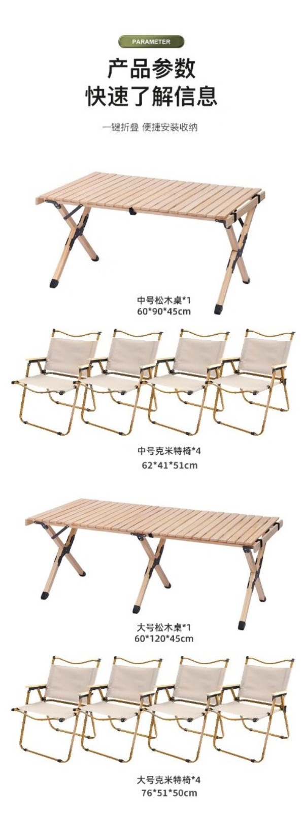 (巨邦佑)BH+飞图乐(FTLY)原木折叠桌椅套装中号:ZDZY0901 原木蛋卷桌套装桌椅五件套