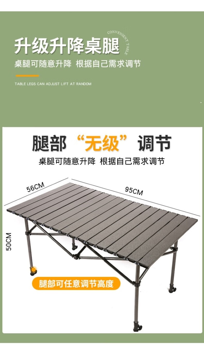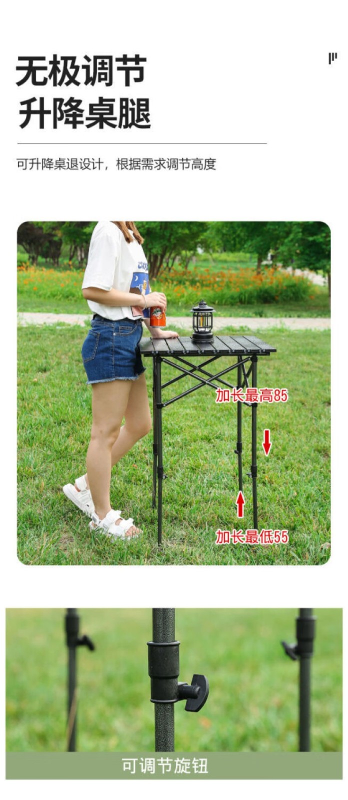 (巨邦佑)BH+露营可升降蛋卷桌-大号:DJZ0502 便携野餐桌子露营用品烧烤桌