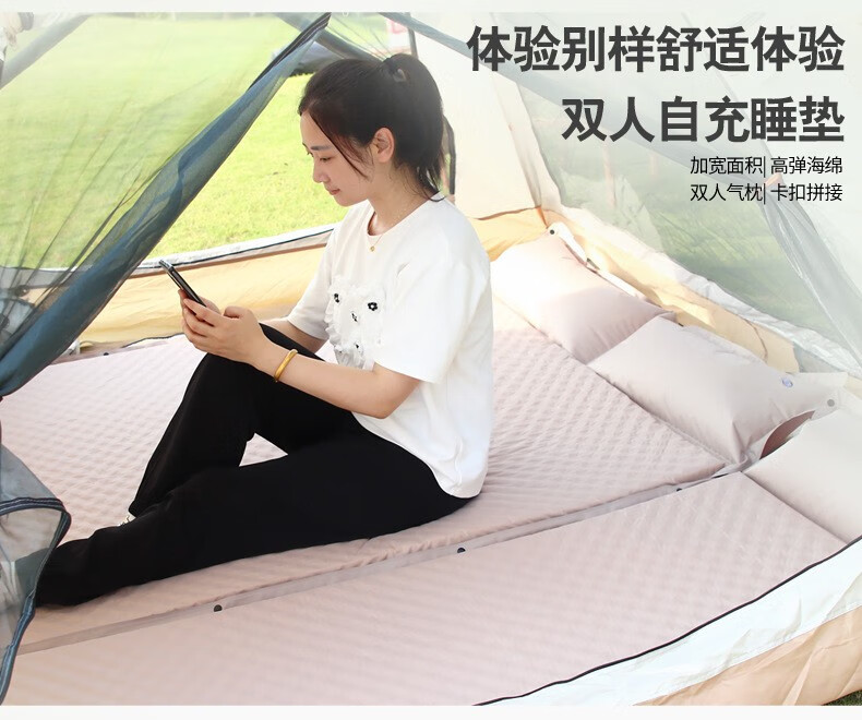 (巨邦佑)BH+飞图乐(FTLY)户外可拼接充气床垫米色 双人:CQC0102 双人可拼接自充气