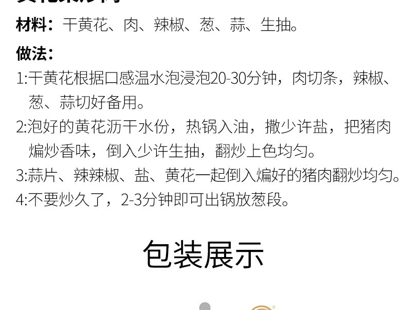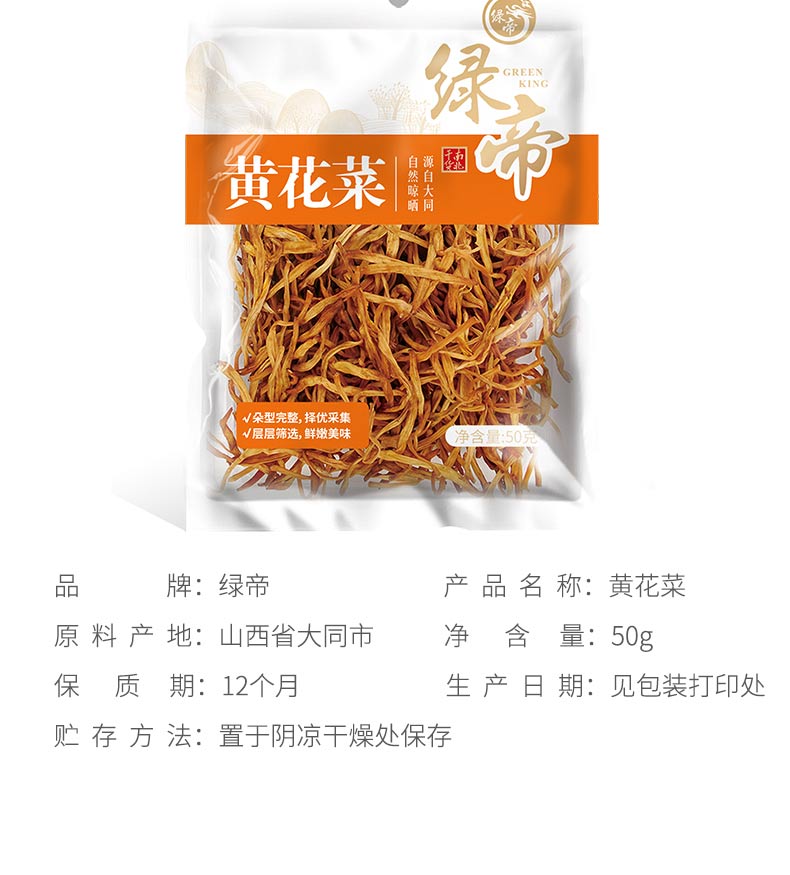 商品名称:(世星阳光)绿帝黄花菜50g*3 干货农家金针菜干下饭菜火锅菜新鲜特产干货山珍特产