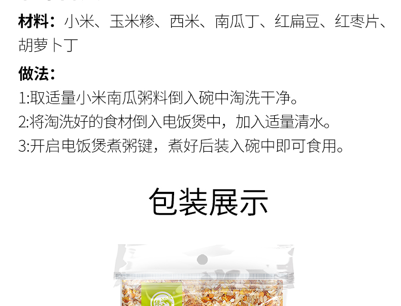 商品名称:(世星阳光)绿帝小米360g*3 南北干货 杂粮 袋装小米小袋熬粥黄