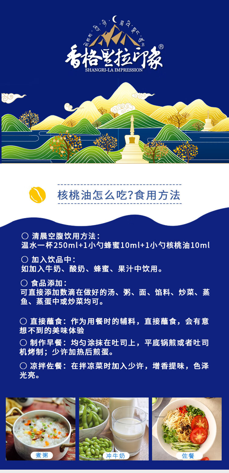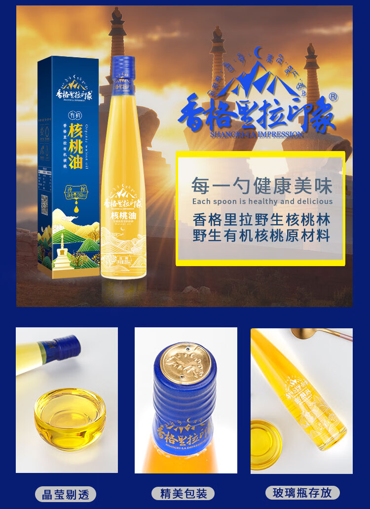 商品名称:(巨邦佑)BJ+香格里拉印象有机核桃油128ml260ml 低温压榨