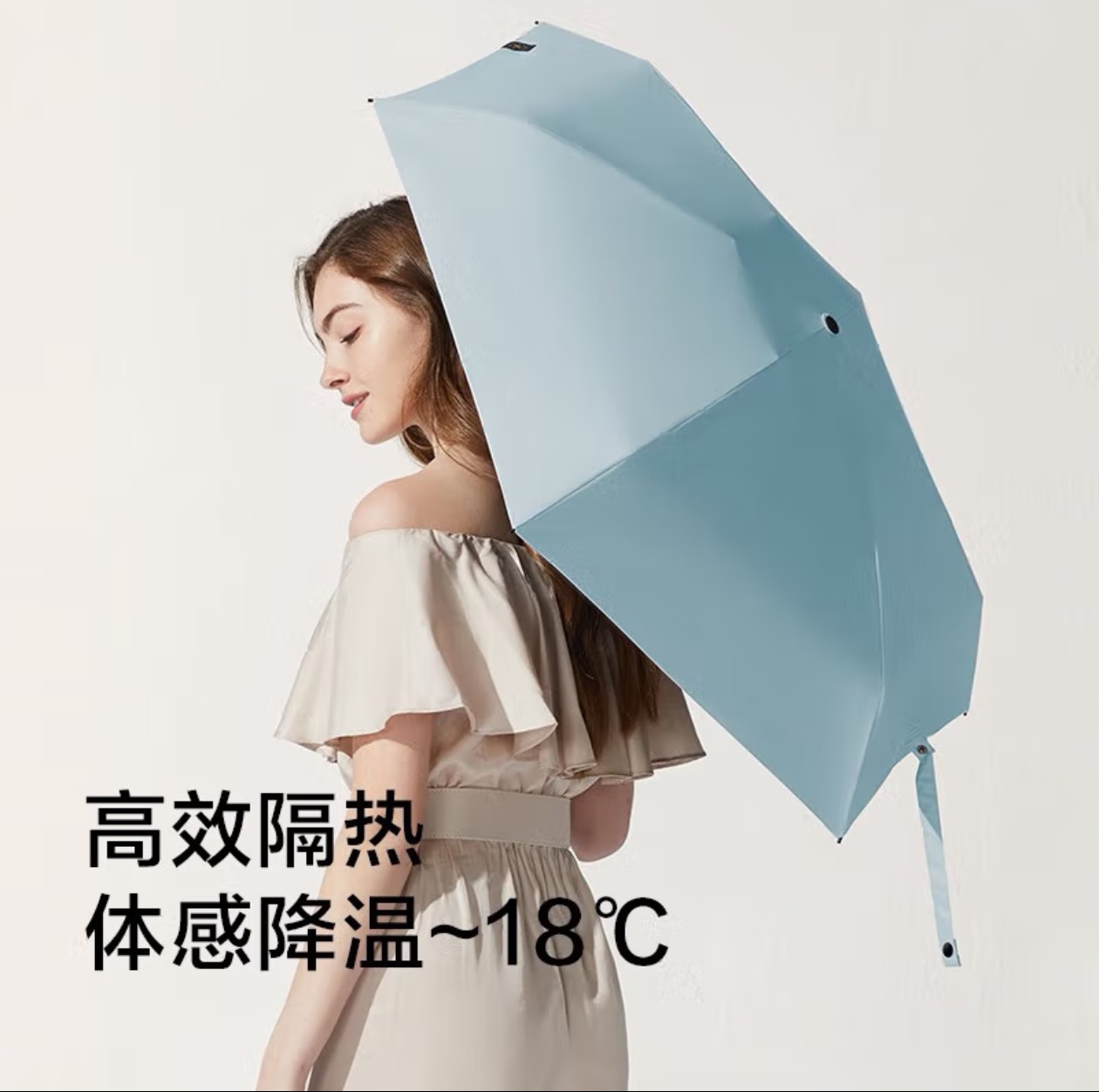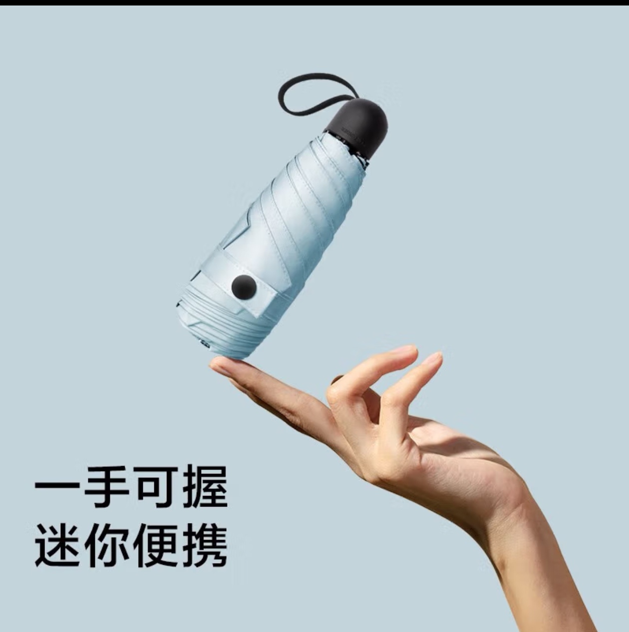 商品名称:(巨邦佑)T+蕉下优品客胶囊太阳伞防晒防紫外线遮阳伞女焦小巧便携晴雨伞两用 静谧蓝--黑胶五折伞