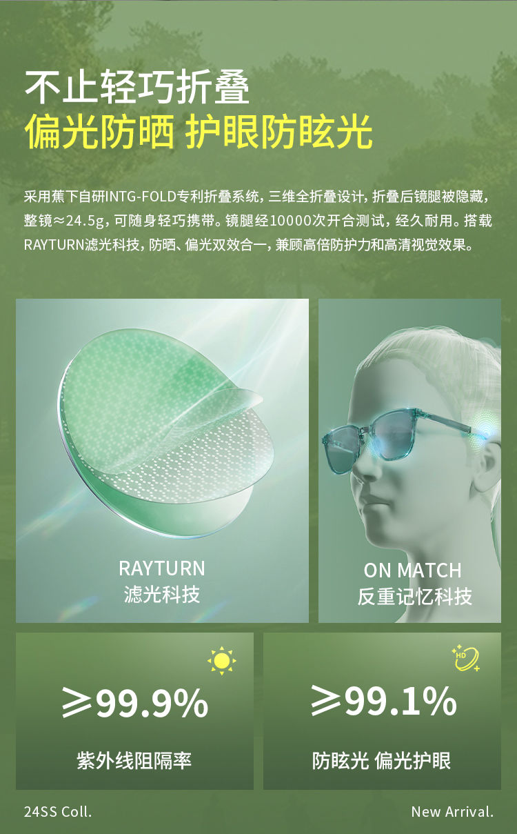 (巨邦佑)T+蕉下方形大框墨镜FO32724可折叠户外防晒轻便防紫外线偏光太阳镜