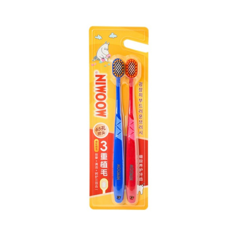 (巨邦佑)BJ+姆明65孔宽头三重养护牙刷两支*6 颜色随机软毛高效清洁