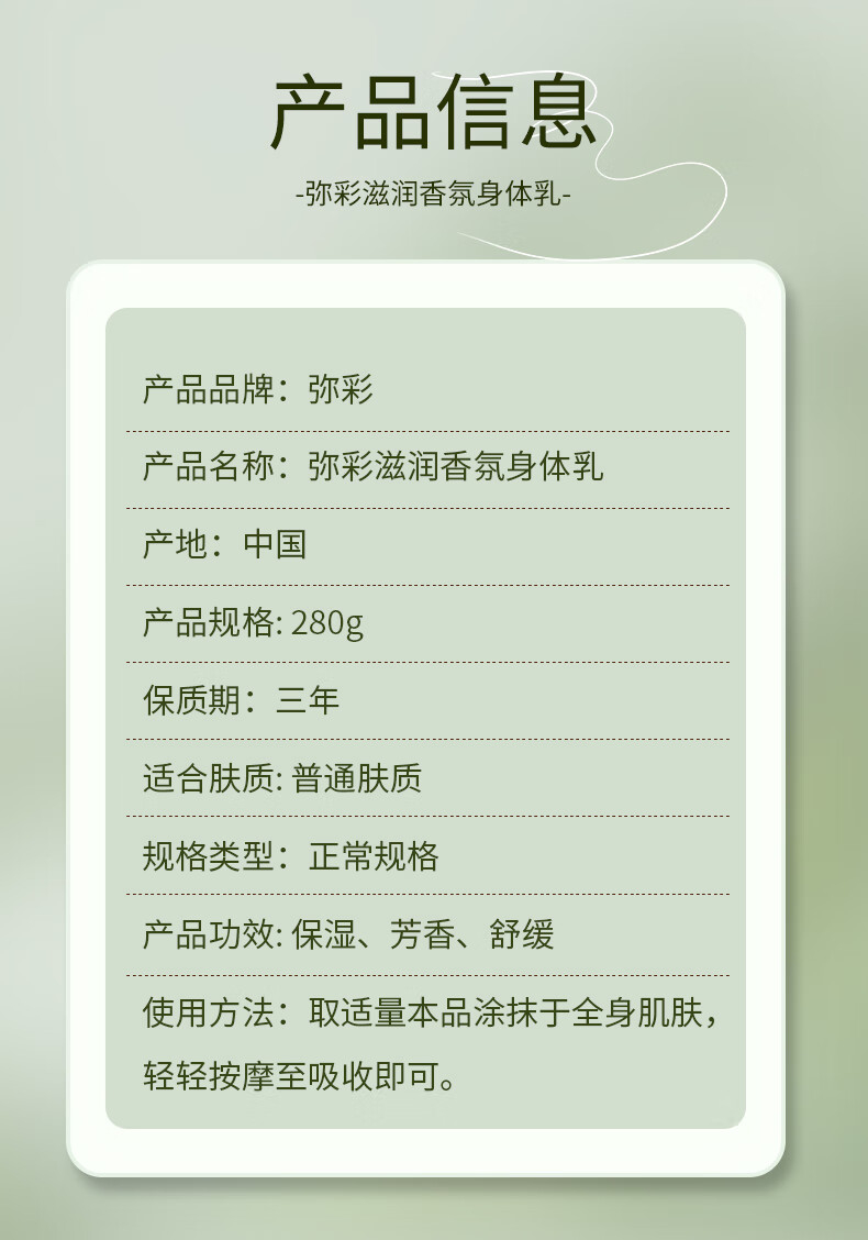 商品名称:(巨邦佑)BH+弥彩香氛身体乳国货滋润保湿持久留香秋冬润肤乳香体女士专用280g