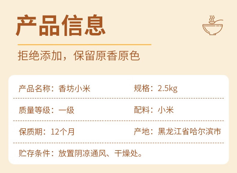 商品名称:(巨邦佑)BJ+溢田香坊小米2.5kg 颗颗金黄粒粒香浓