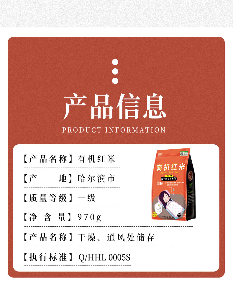 商品名称:(巨邦佑)BJ+溢田有机红米970g 红新米五谷杂粮粗粮农家红米饭东北特产真空包装