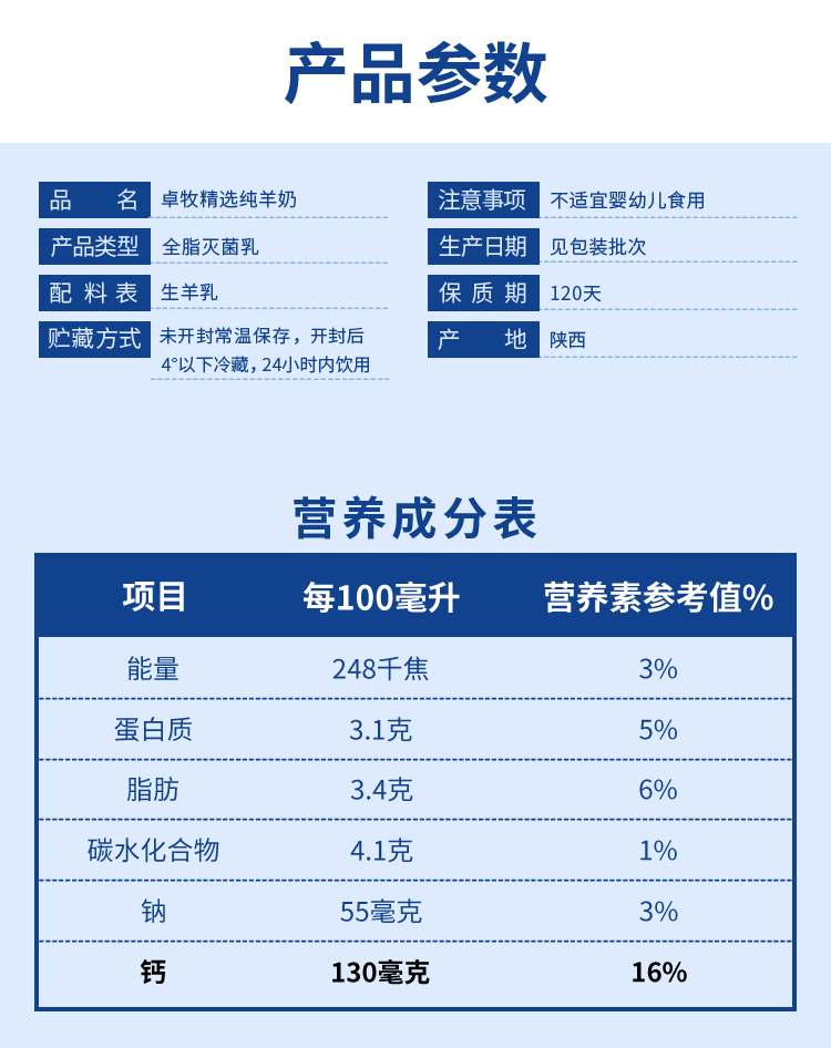 商品名称:(世星阳光)卓牧精选纯羊奶200ml*16盒提高钙纯山羊奶成人中老年孕妇学生鲜奶年货