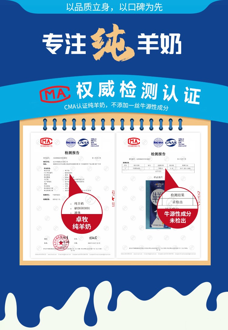 (世星阳光)卓牧精选纯羊奶200ml*16盒提高钙纯山羊奶成人中老年孕妇学生鲜奶年货