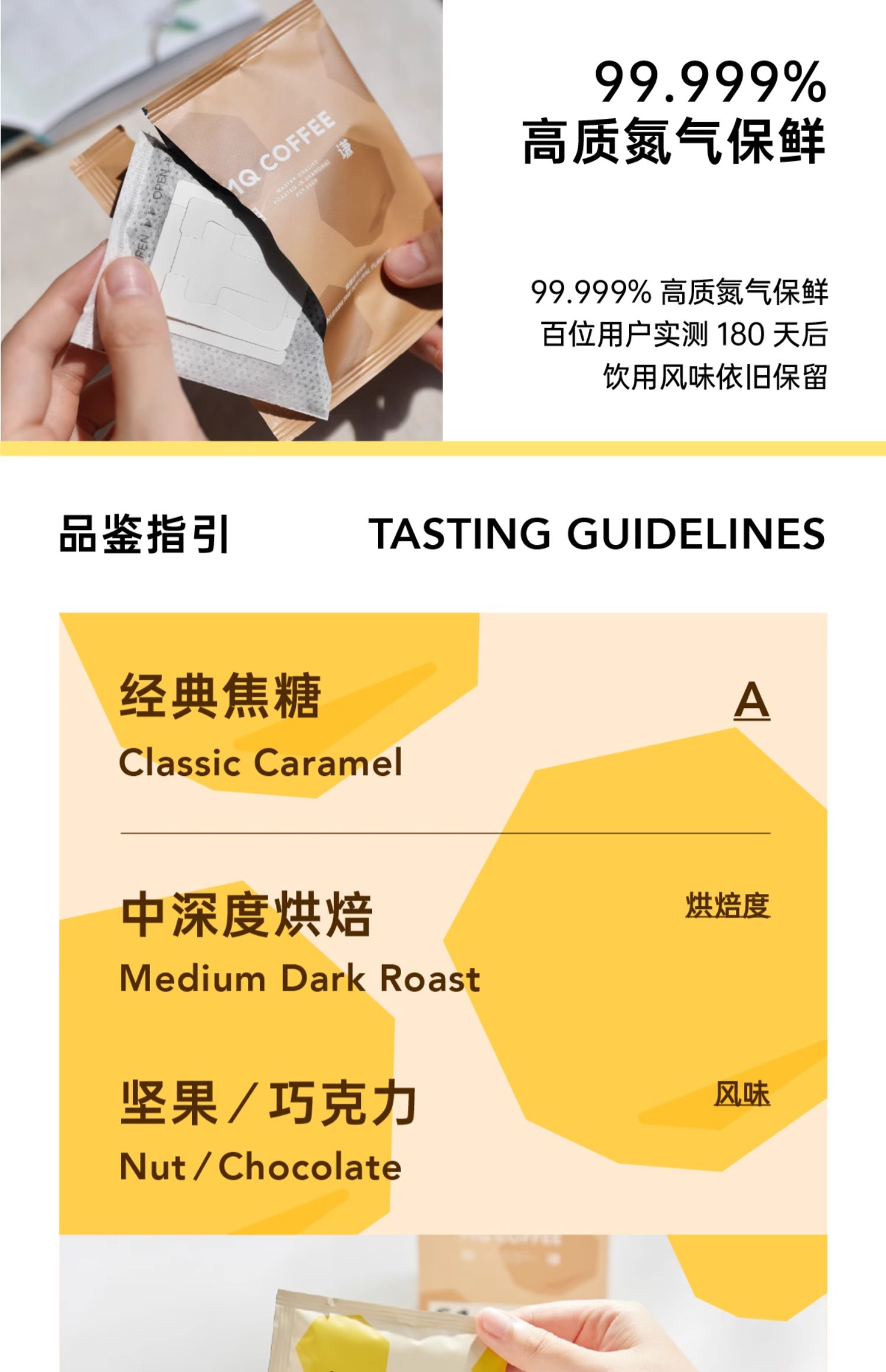 商品名称:(巨邦佑)BJ+明谦甄选经典平衡挂耳咖啡10g*10 经典焦糖浓郁黑巧黑金可可滤泡式新鲜烘焙咖啡