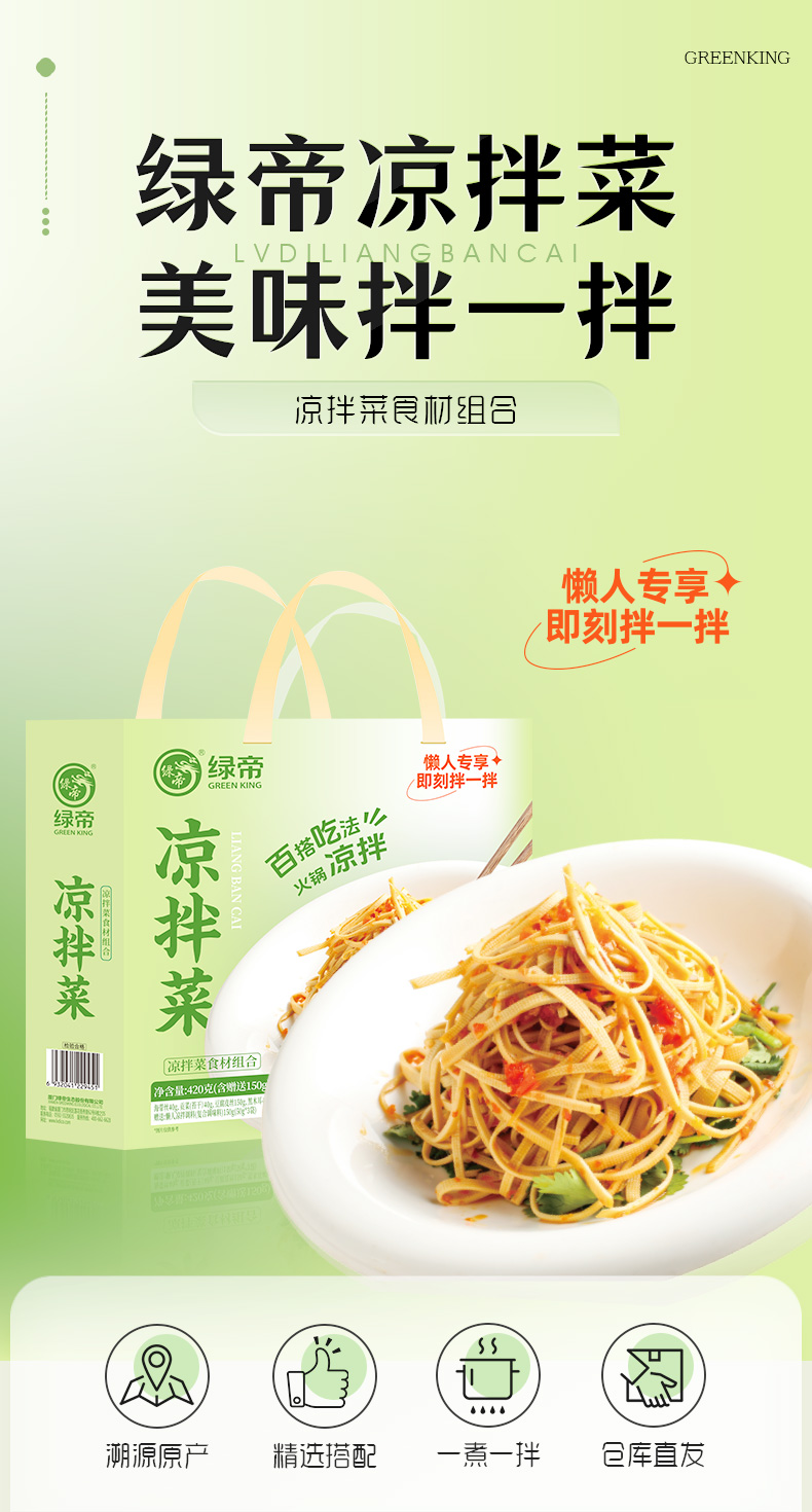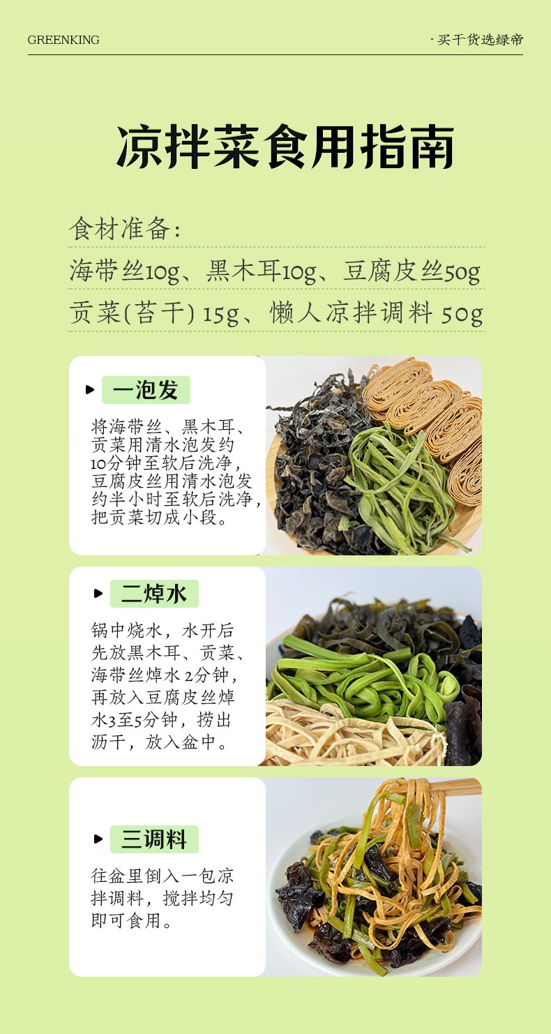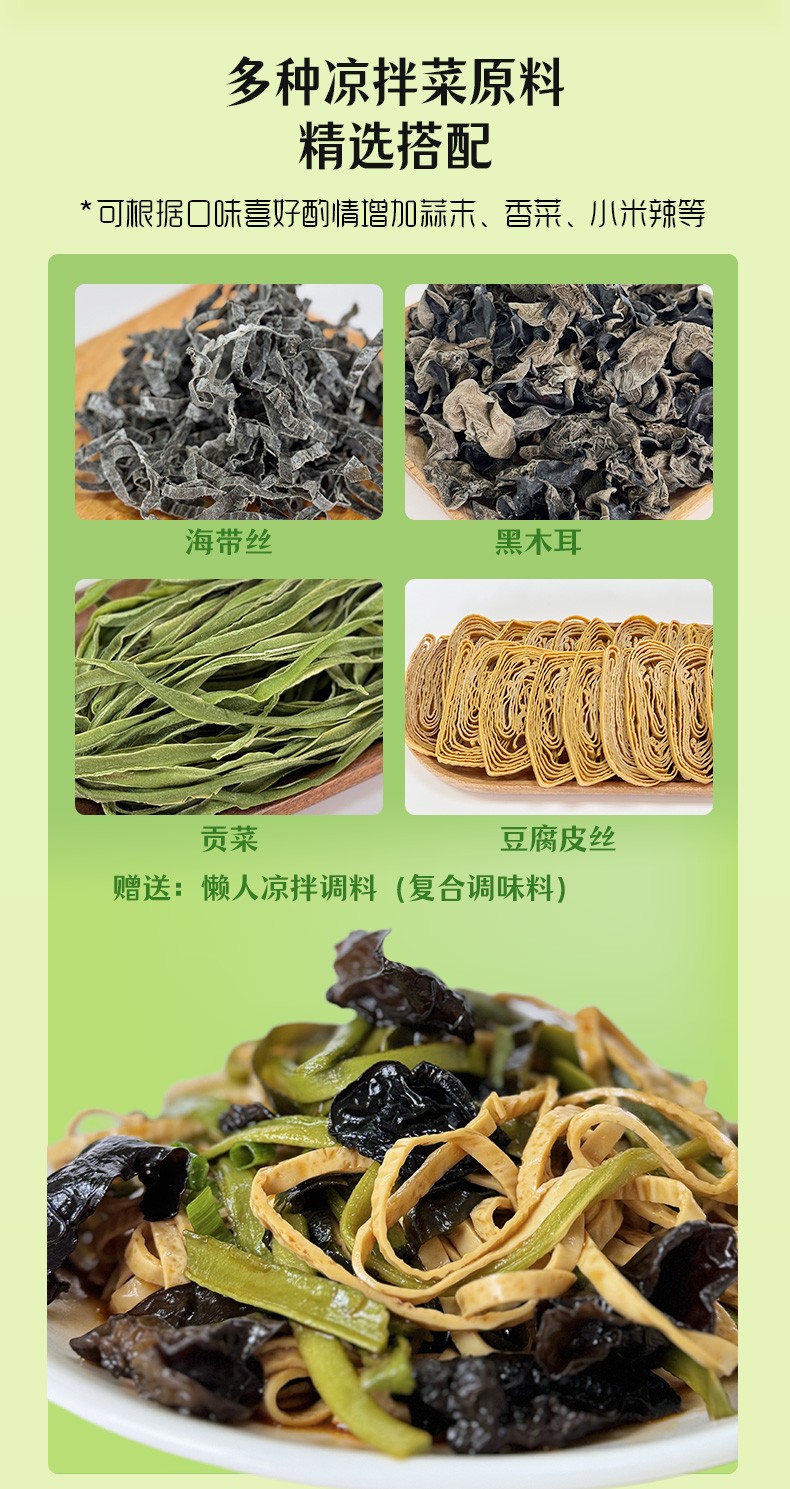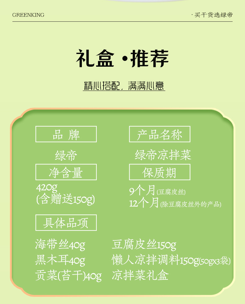 商品名称:(世星阳光)绿帝凉拌菜(海带丝黑木耳豆腐皮贡菜)礼盒420g