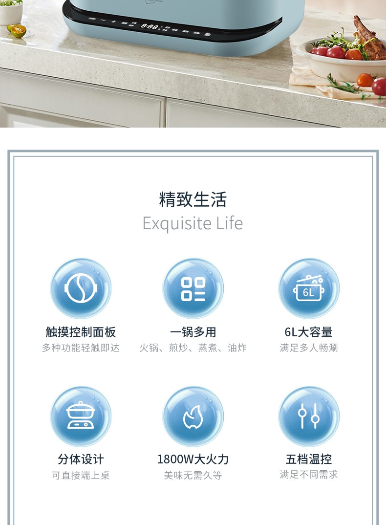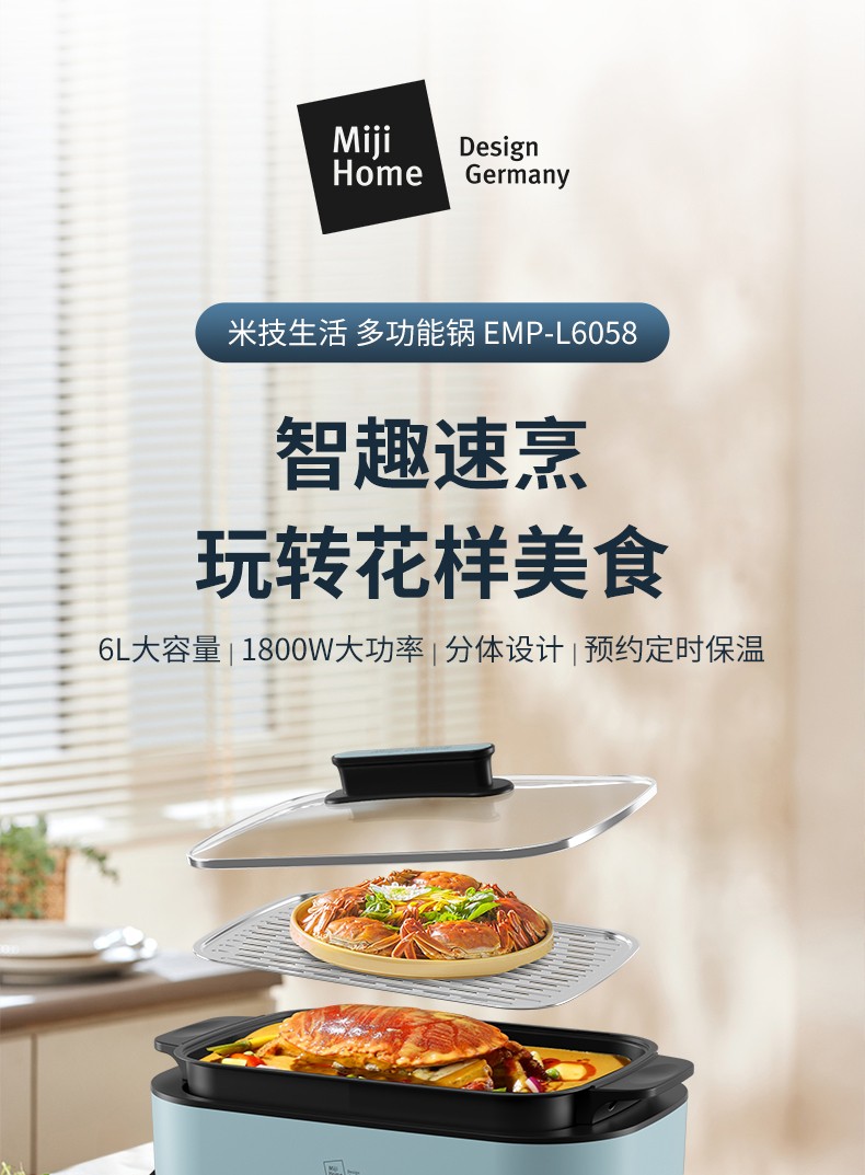 商品名称:(世星阳光) 米技 多功能锅 EMP-L6058 6升分体式电火锅预约保温