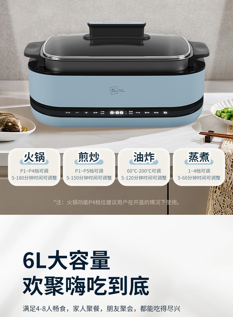 (世星阳光) 米技 多功能锅 EMP-L6058 6升分体式电火锅预约保温