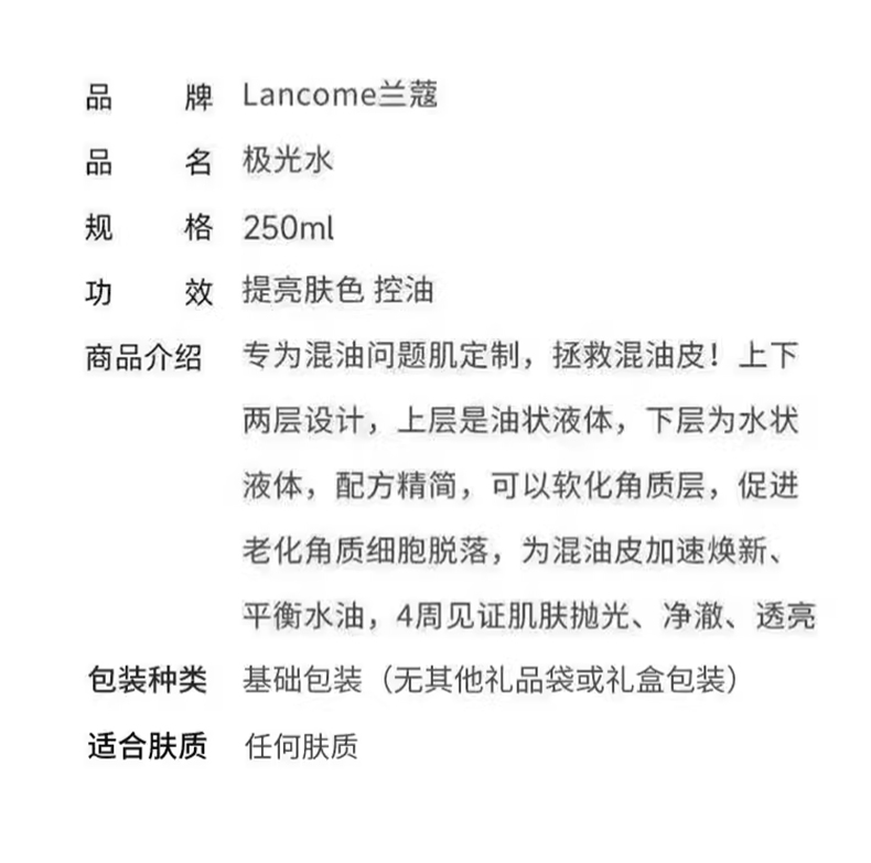 商品名称:(世星阳光) 兰蔻极光水250ml 精华水提亮护肤品礼盒生日礼物送女友