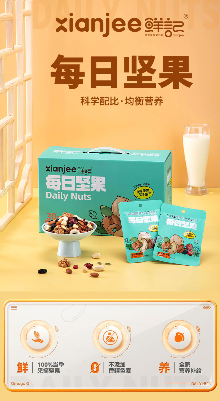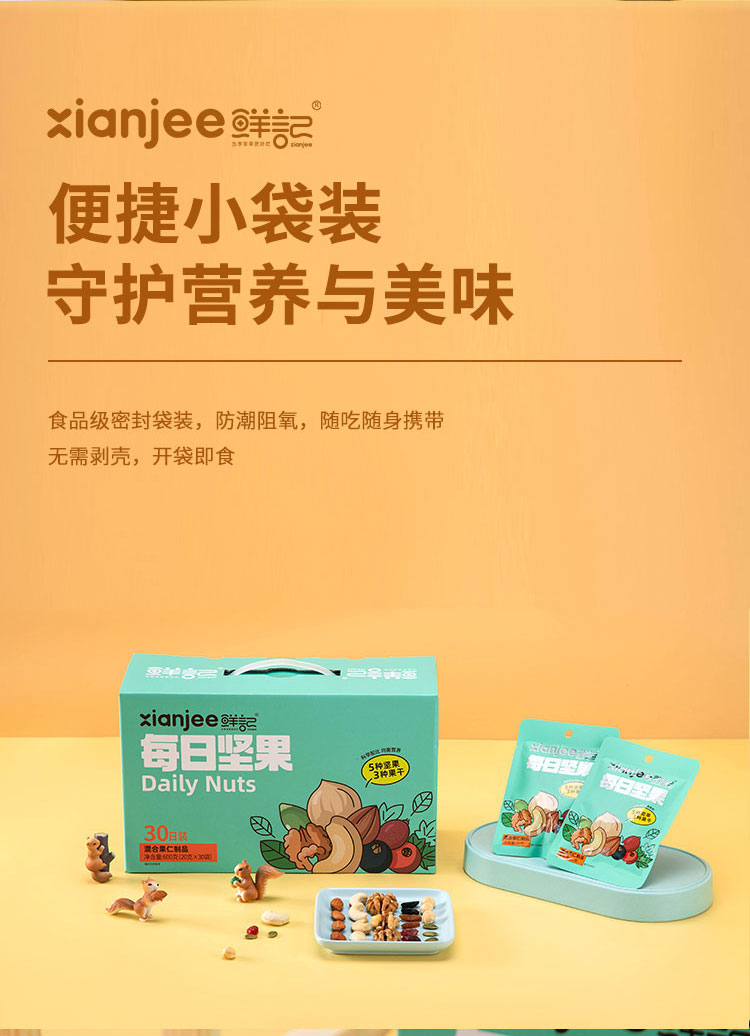 (中合誉品)鲜记每日坚果600g(20g*30袋)科学配比