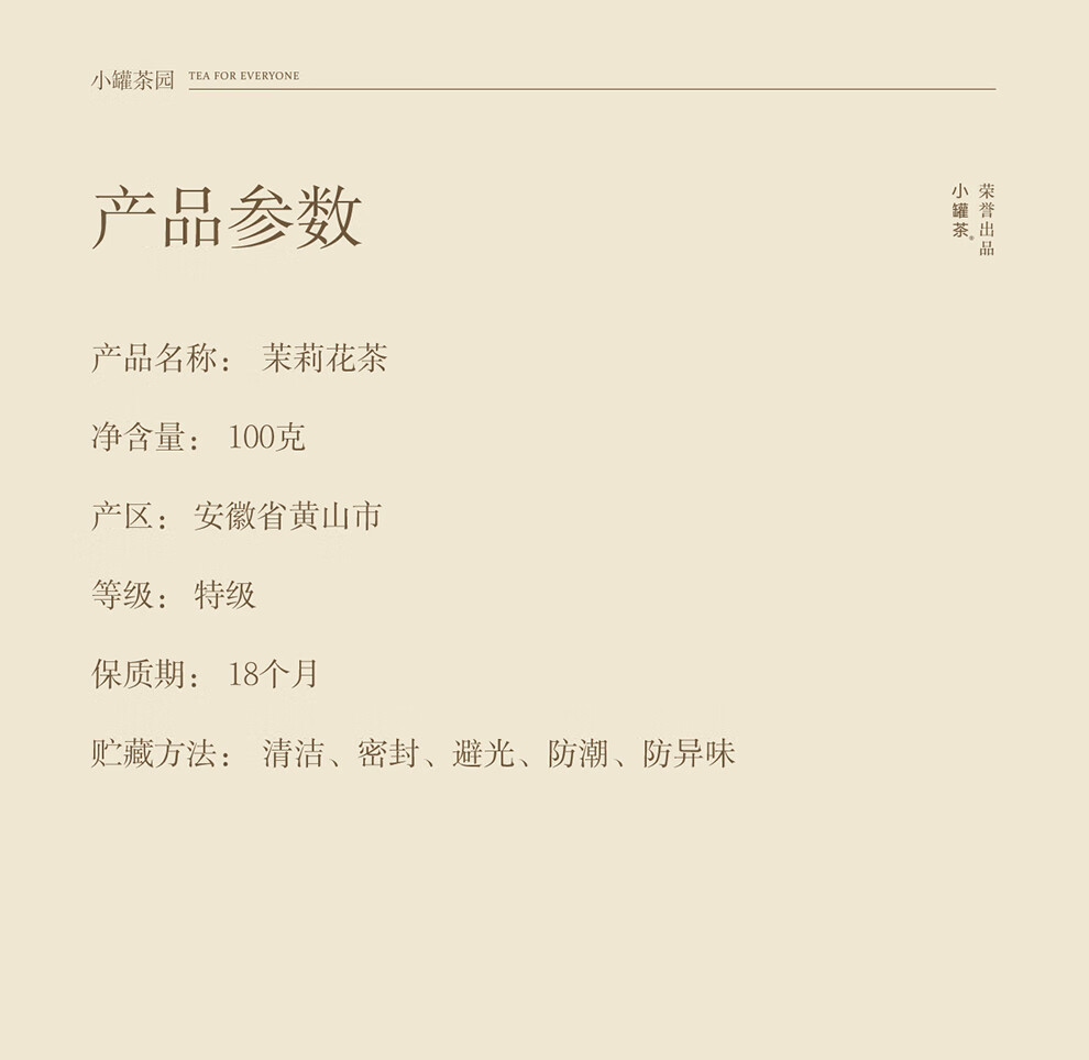 商品名称:(超运·禾贸)小罐茶园金标系列.茉莉花茶(100g)