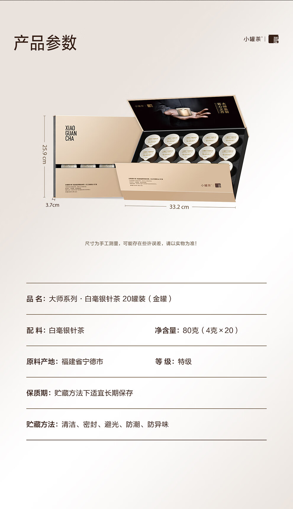 商品名称:(超运·禾贸)小罐茶金罐20罐装白毫银针茶20*4g