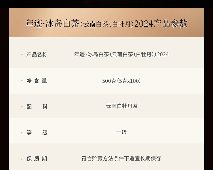 商品名称:(超运·禾贸)小罐茶年迹·冰岛白茶(云南白茶白牡丹)2024年500g(5g*100)