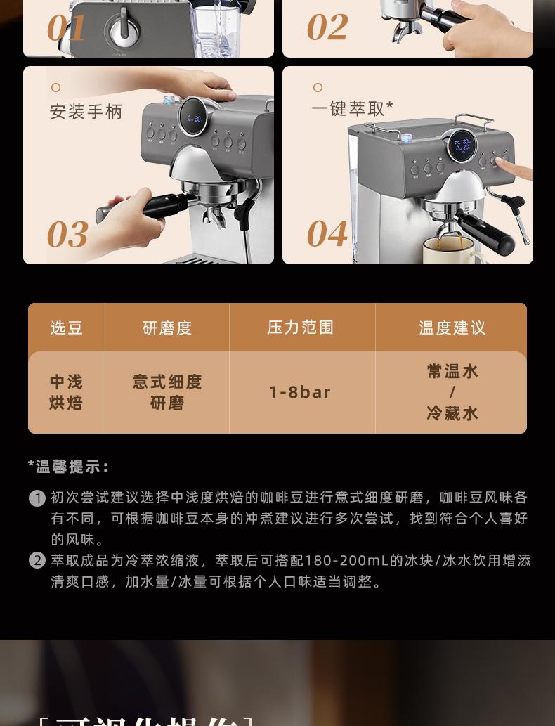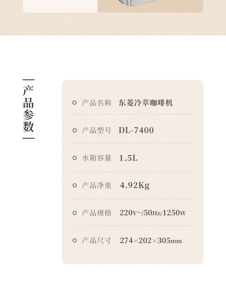 商品名称:(世星阳光)东菱冷萃咖啡机 DL-7400 家用咖啡机浓缩萃取 蒸汽打奶泡机