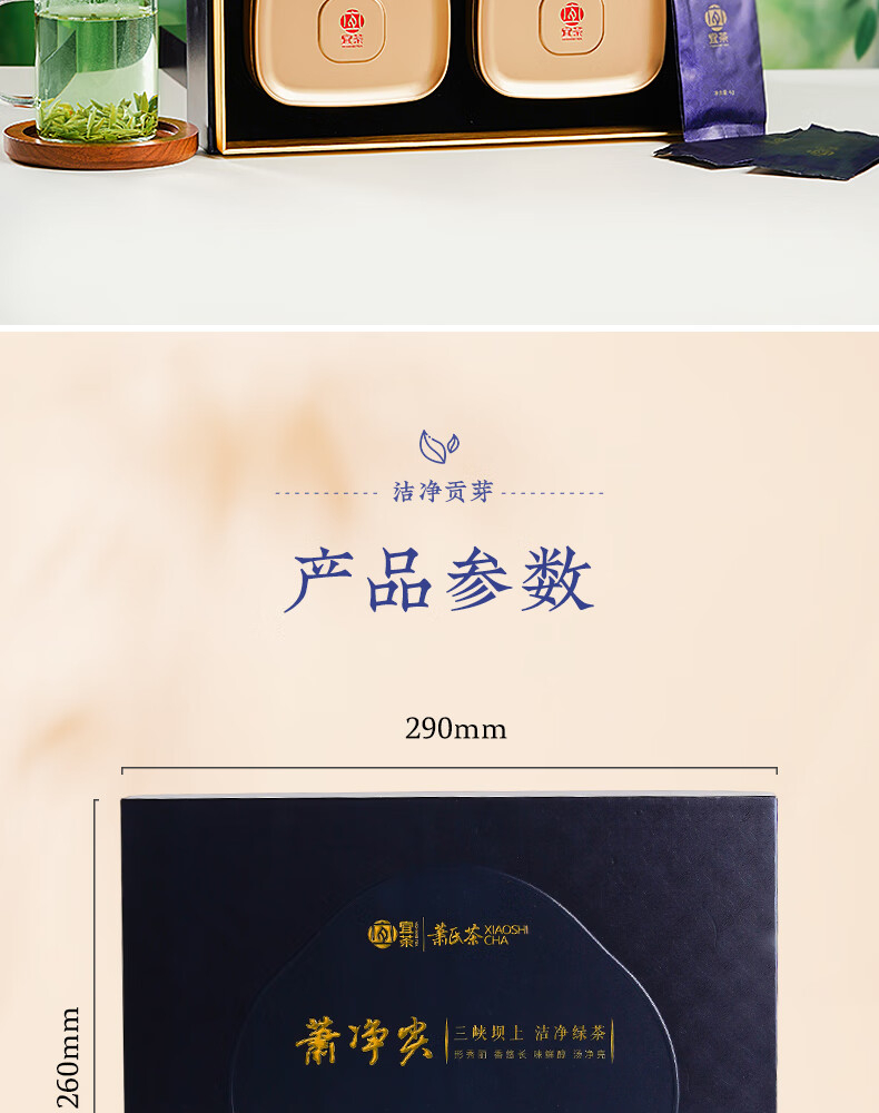 商品名称:(巨邦佑)BH+萧氏茶明前特级大师茶萧净尖头采160g三峡高山绿茶送礼盒佳品