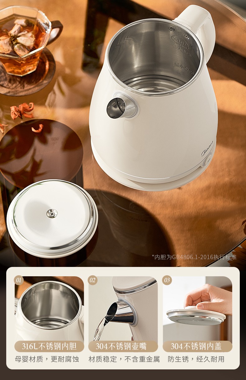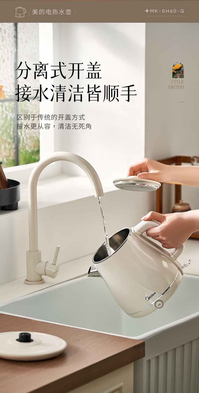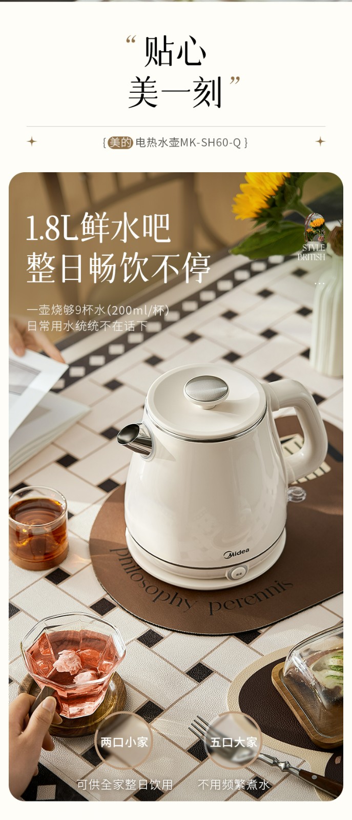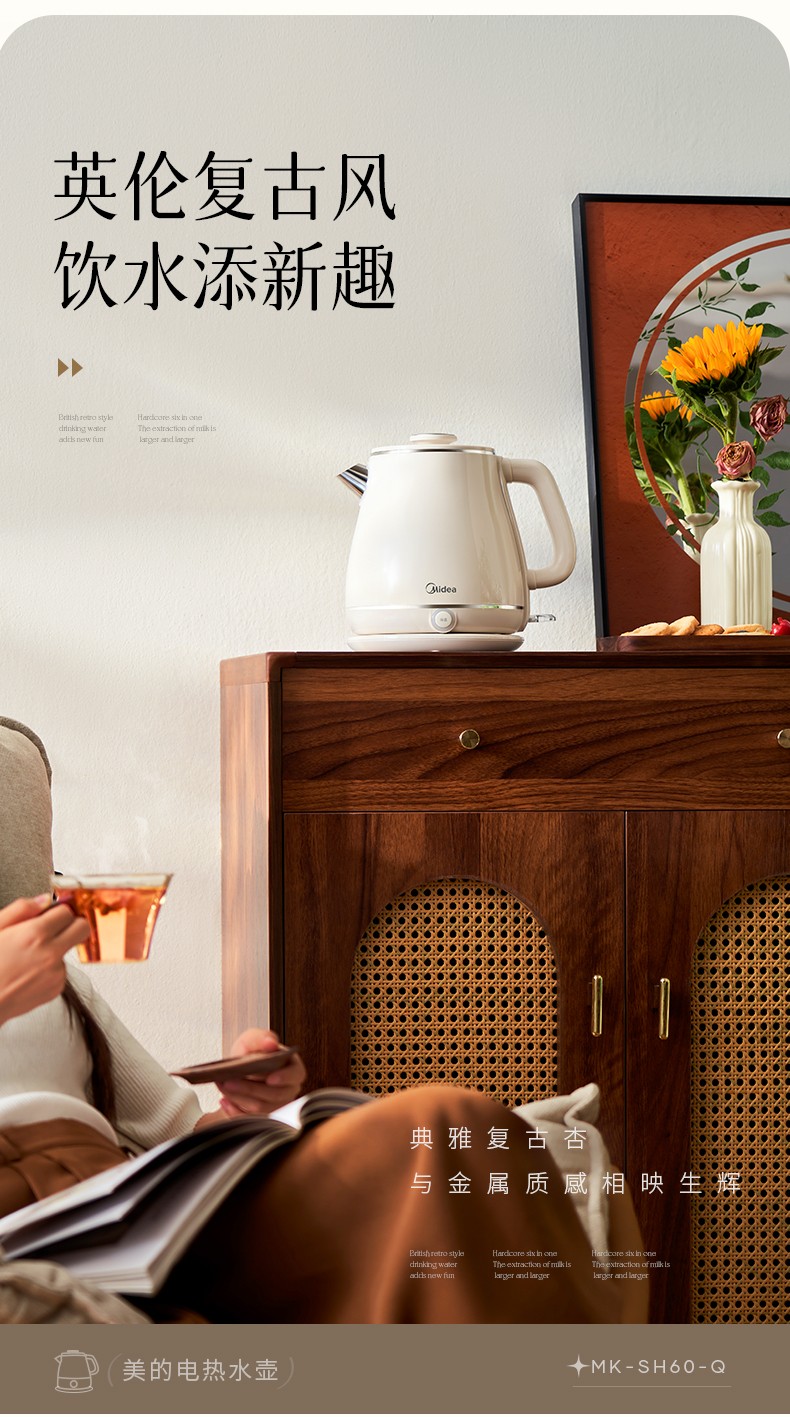 商品名称:(巨邦佑)R+美的(Midea)电热水壶 SH60-Q316L母婴级不锈钢电水壶 家用大容量烧水壶 一键恒温55℃ 双层防烫开水壶 1.8L 【复古系列】