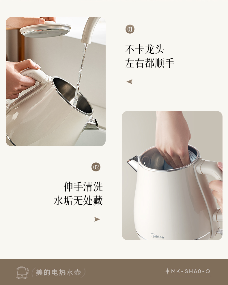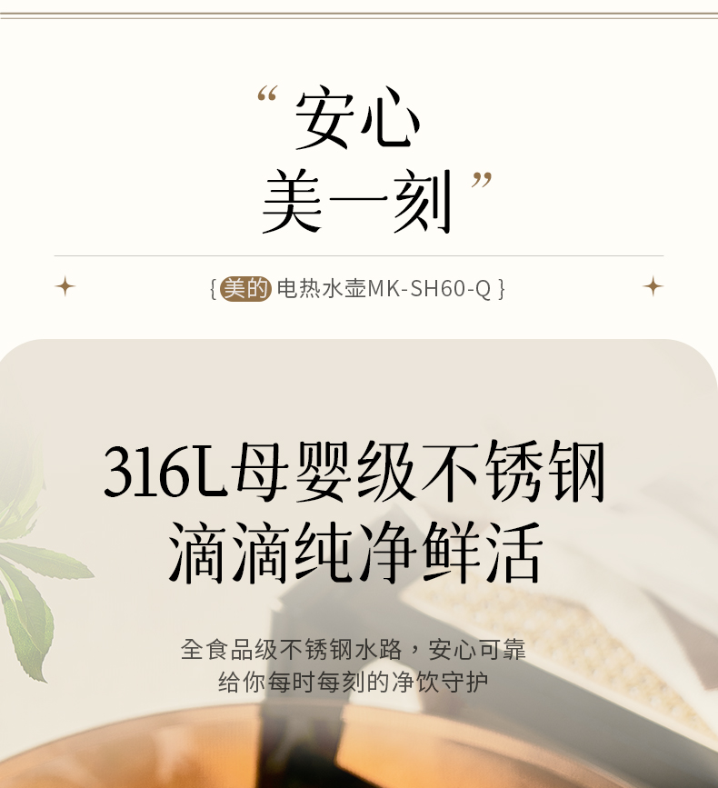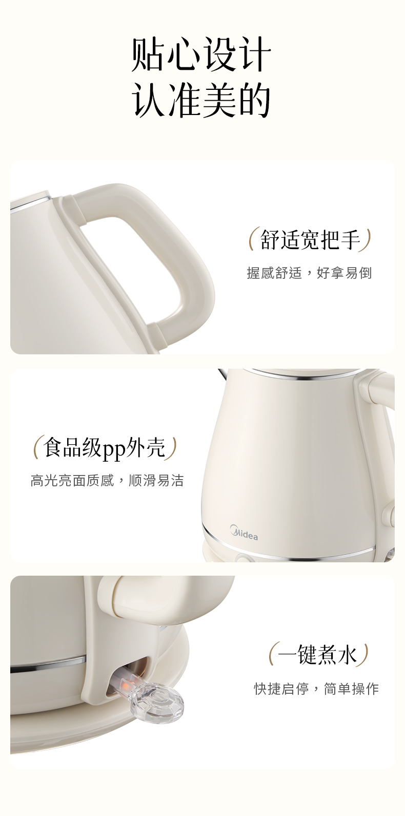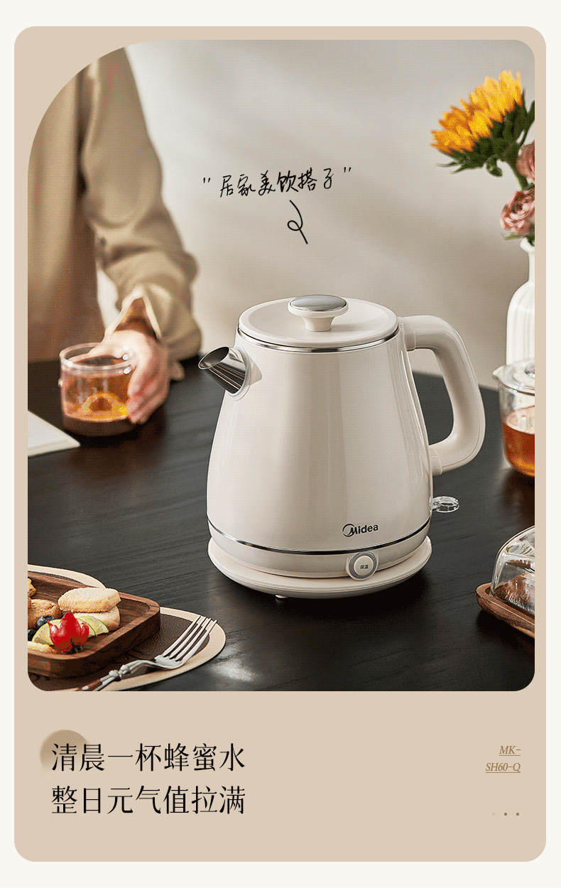 商品名称:(巨邦佑)R+美的(Midea)电热水壶 SH60-Q316L母婴级不锈钢电水壶 家用大容量烧水壶 一键恒温55℃ 双层防烫开水壶 1.8L 【复古系列】