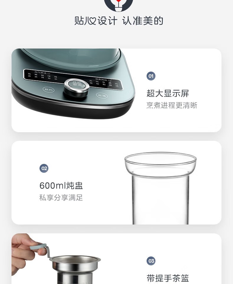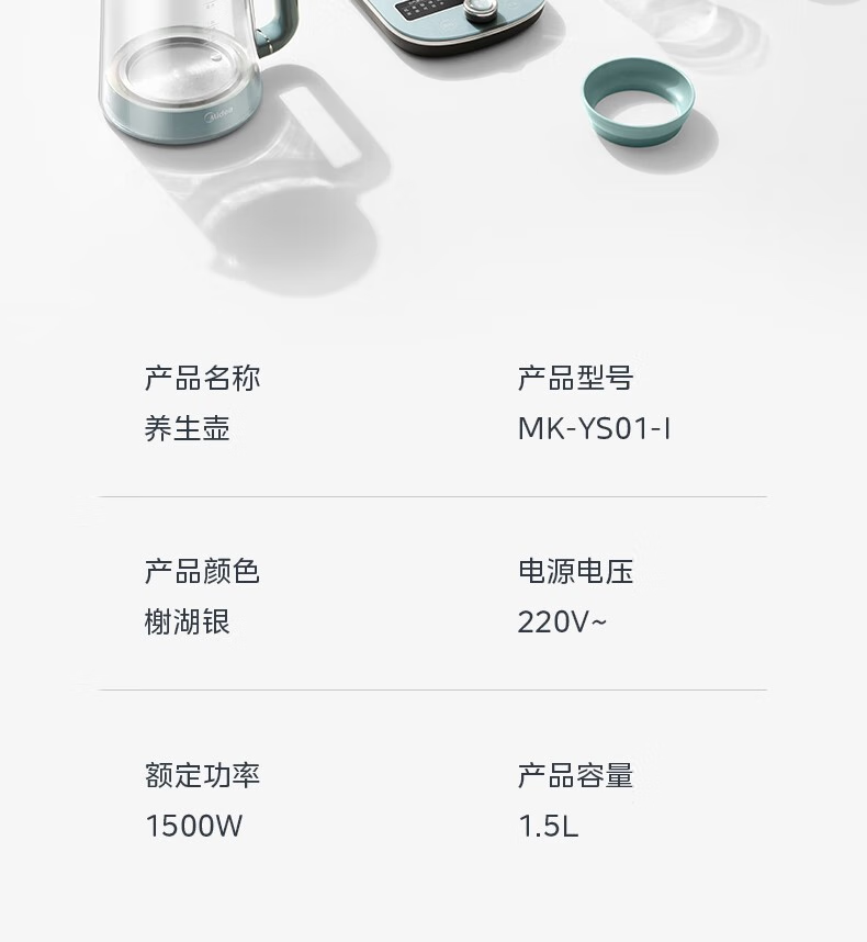 商品名称:(巨邦佑)R+美的(Midea) 养生壶 MK-YS01-I 家用烧水壶 煎药壶泡茶壶 双层防烫 隔水炖 316L母婴级不锈钢 多功能高端烧水壶(1500W) 1.5L