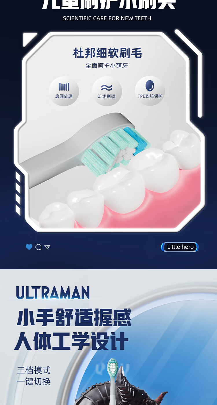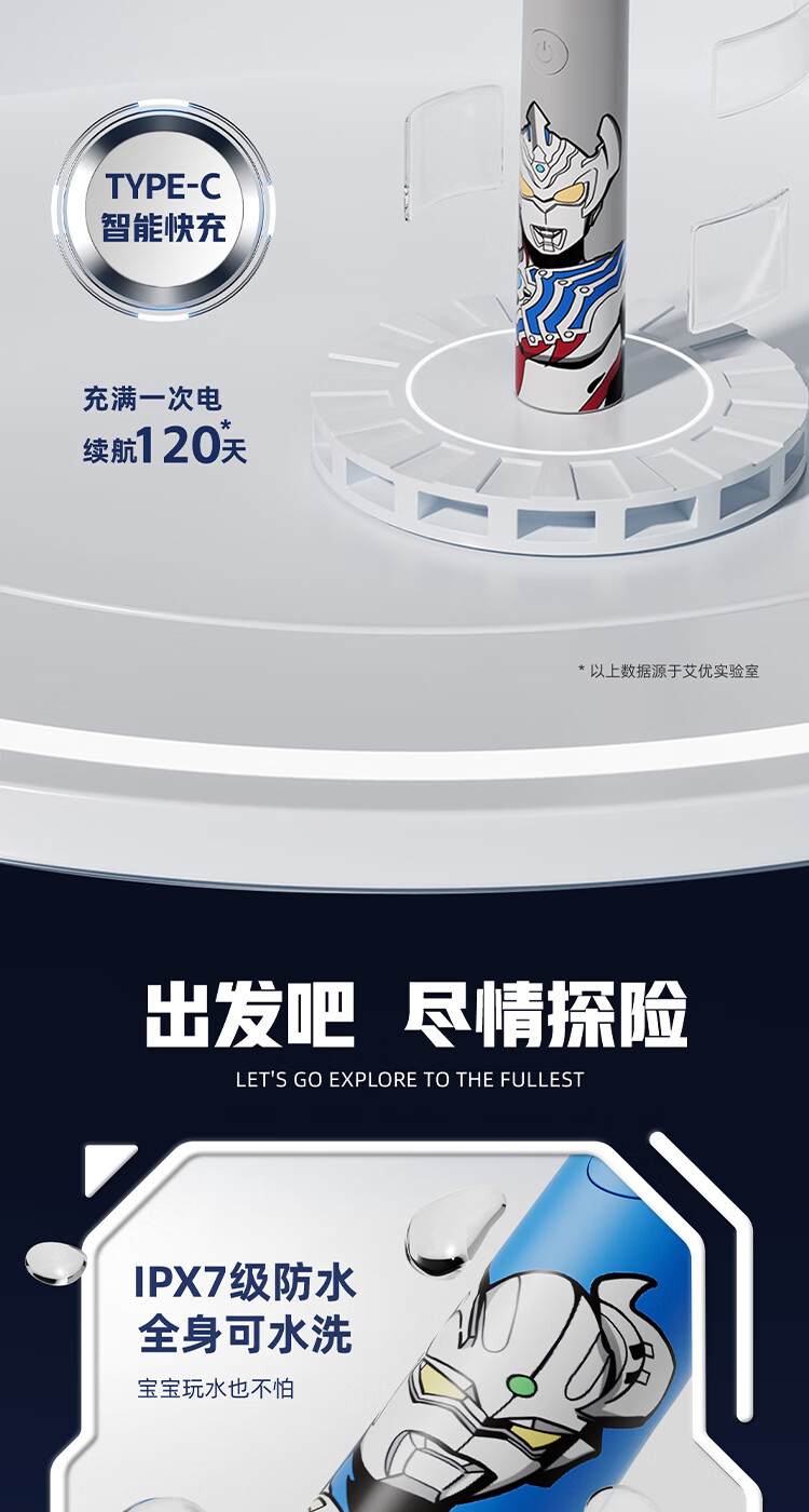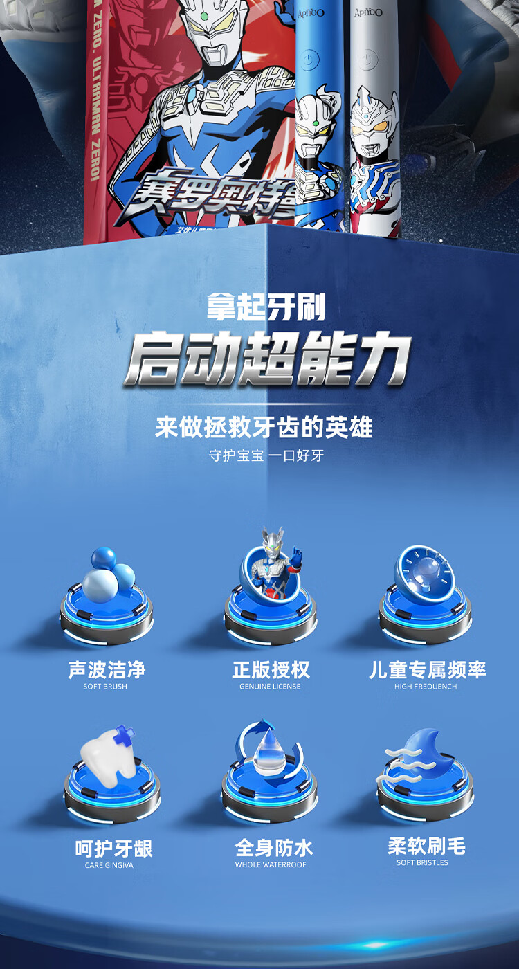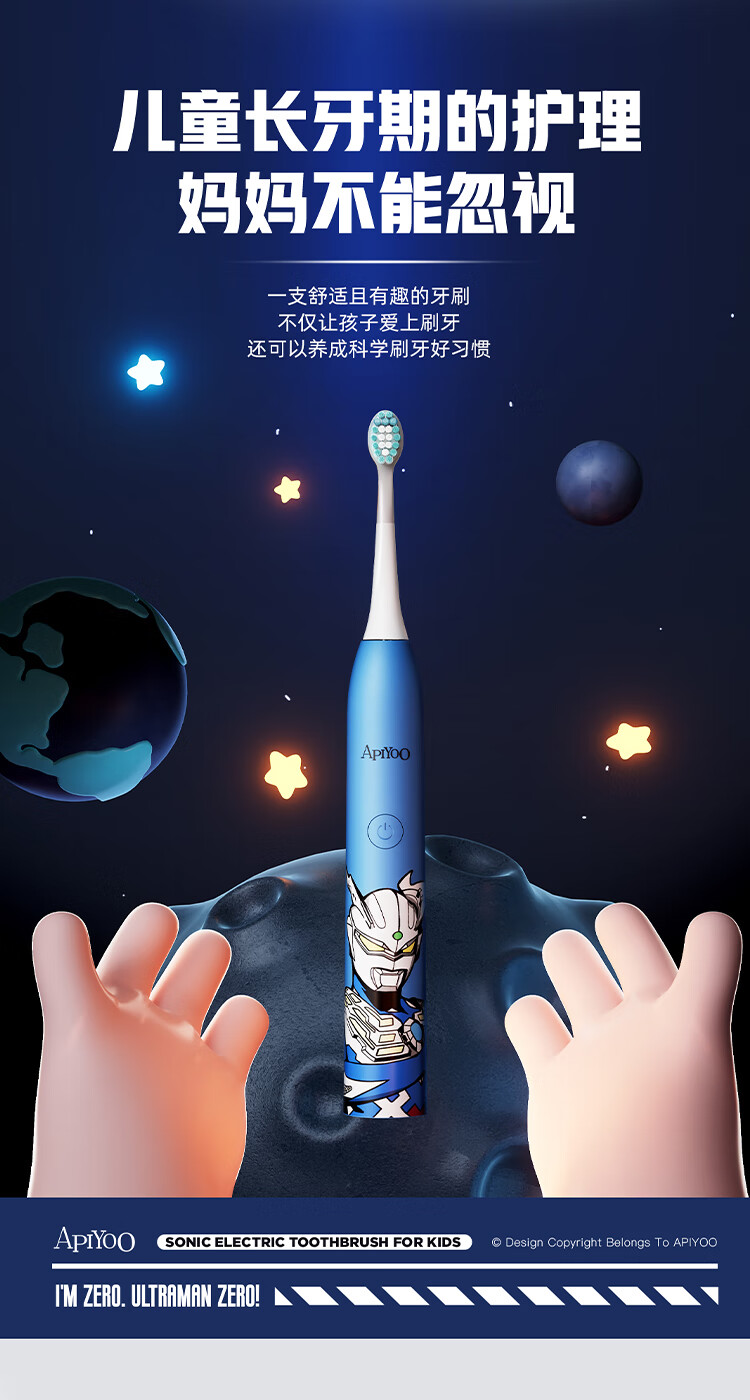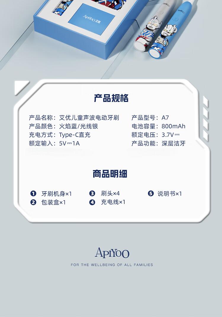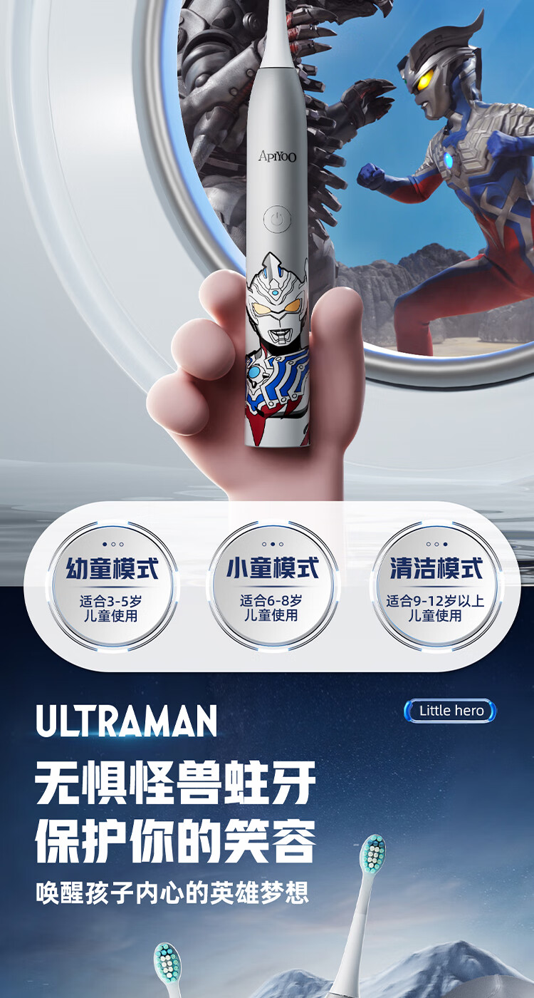 商品名称:(巨邦佑)BJ+Apiyoo艾优奥特曼儿童电动牙刷A7 3-6-12岁智能清洁牙齿护龈