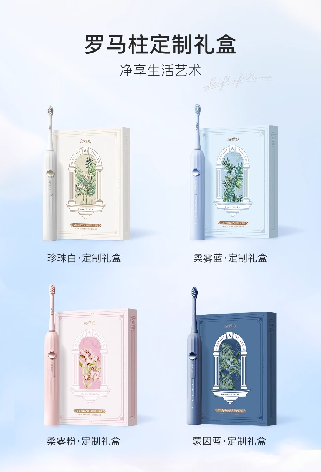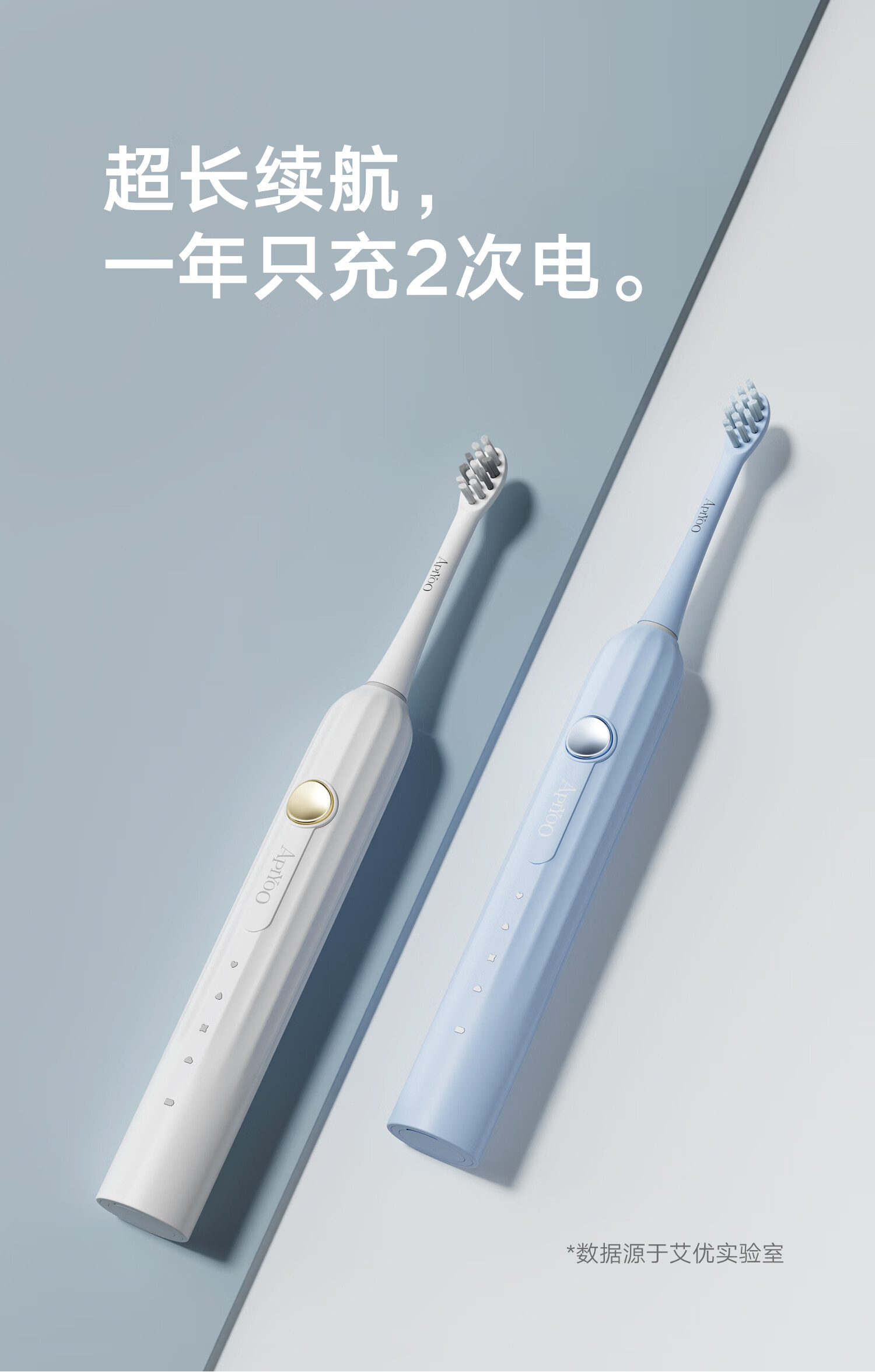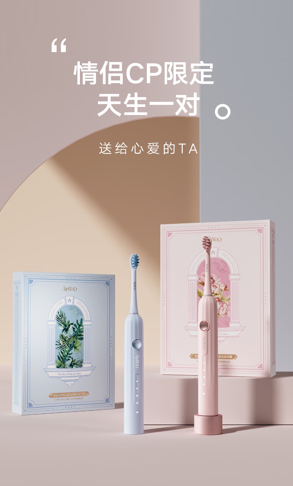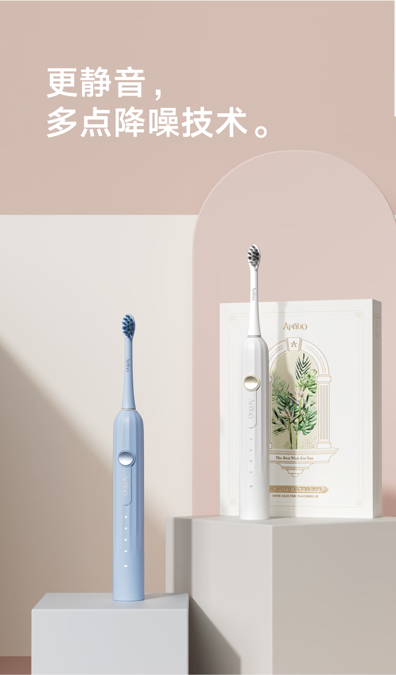 (巨邦佑)BJ+Apiyoo艾优成人声波电动牙刷T1-A 含刷头*4多色可选全自动软毛护龈清洁成人情侣礼物送男友送女友生日礼物节日礼物