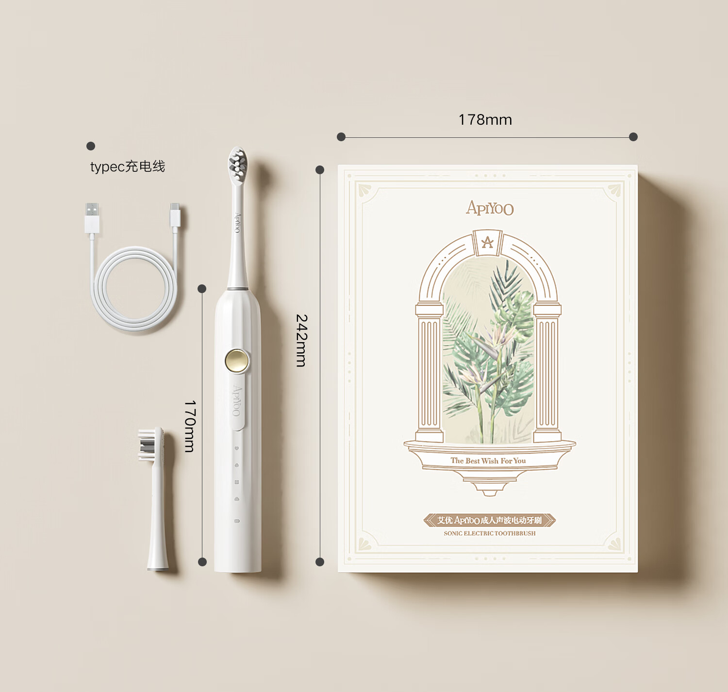 商品名称:(巨邦佑)BJ+Apiyoo艾优成人声波电动牙刷T1-A 含刷头*4多色可选全自动软毛护龈清洁成人情侣礼物送男友送女友生日礼物节日礼物