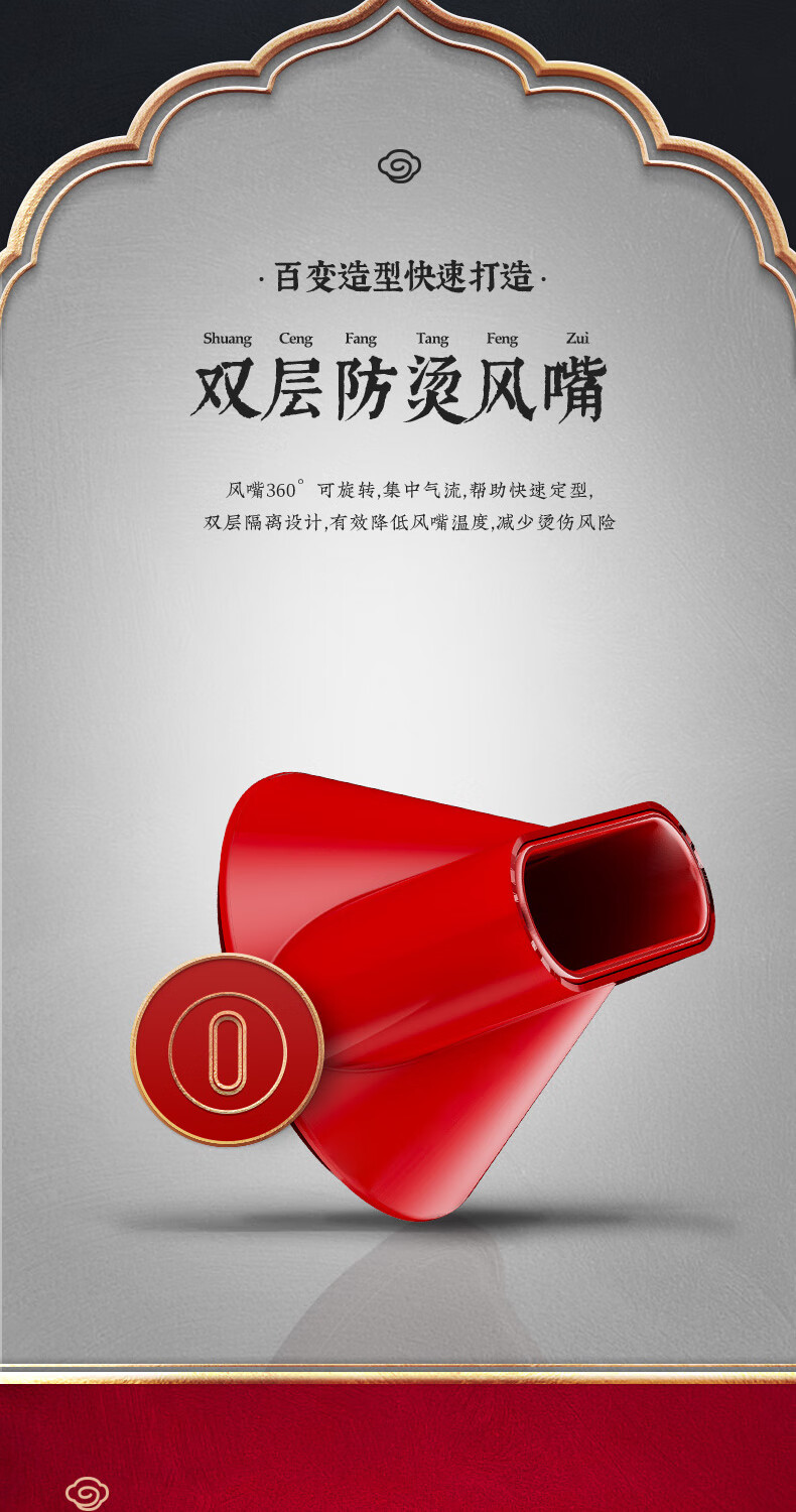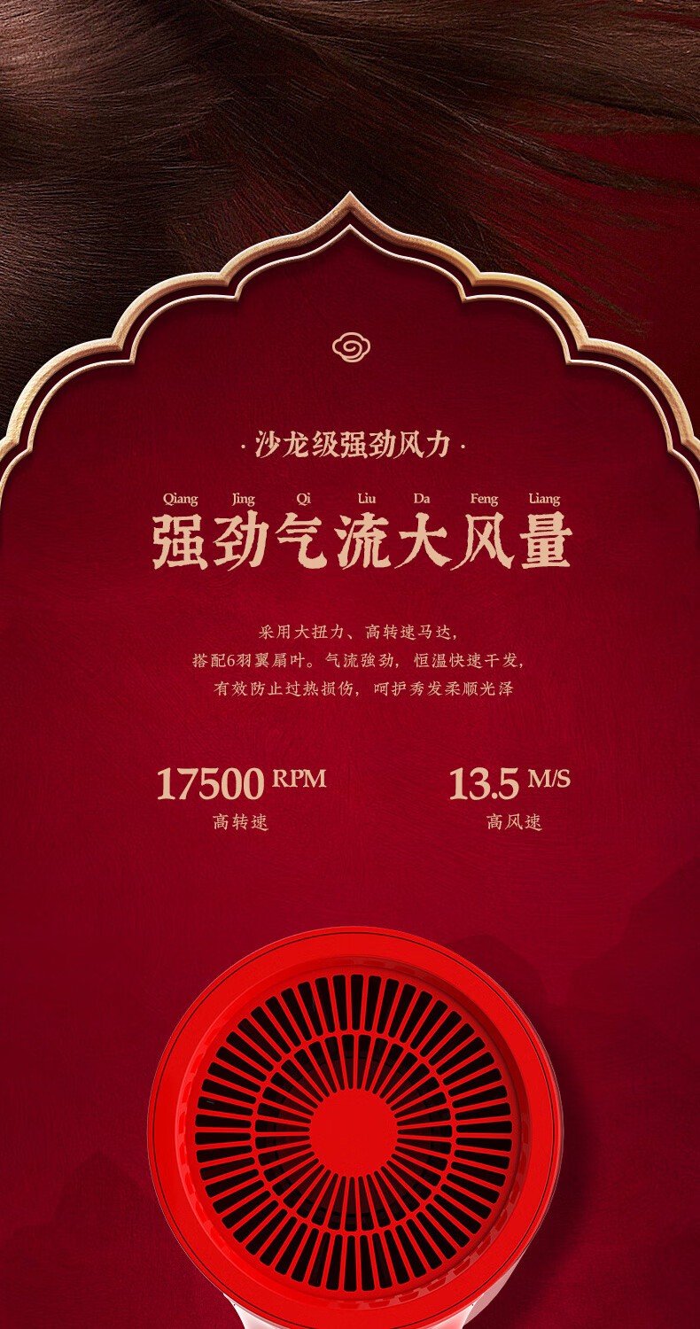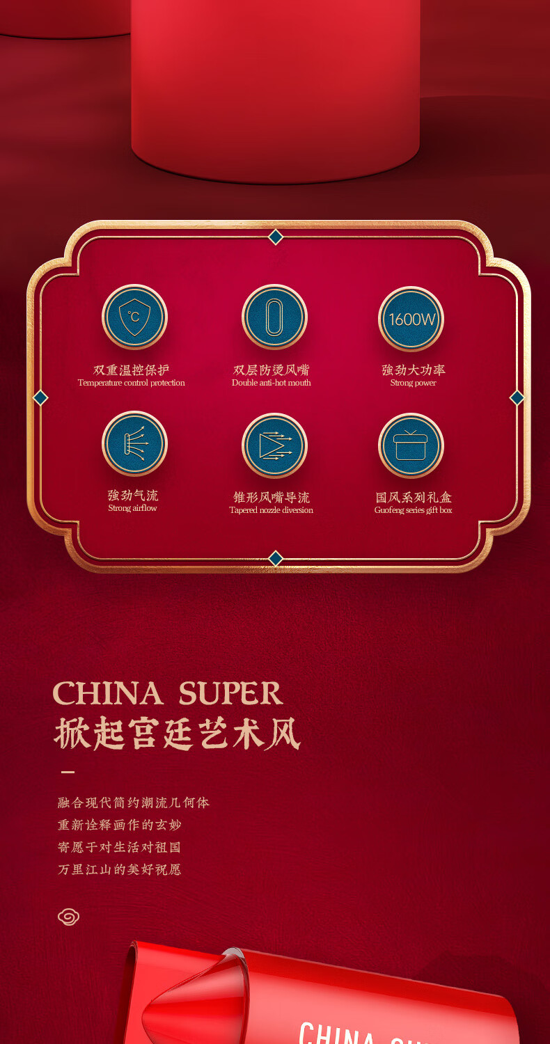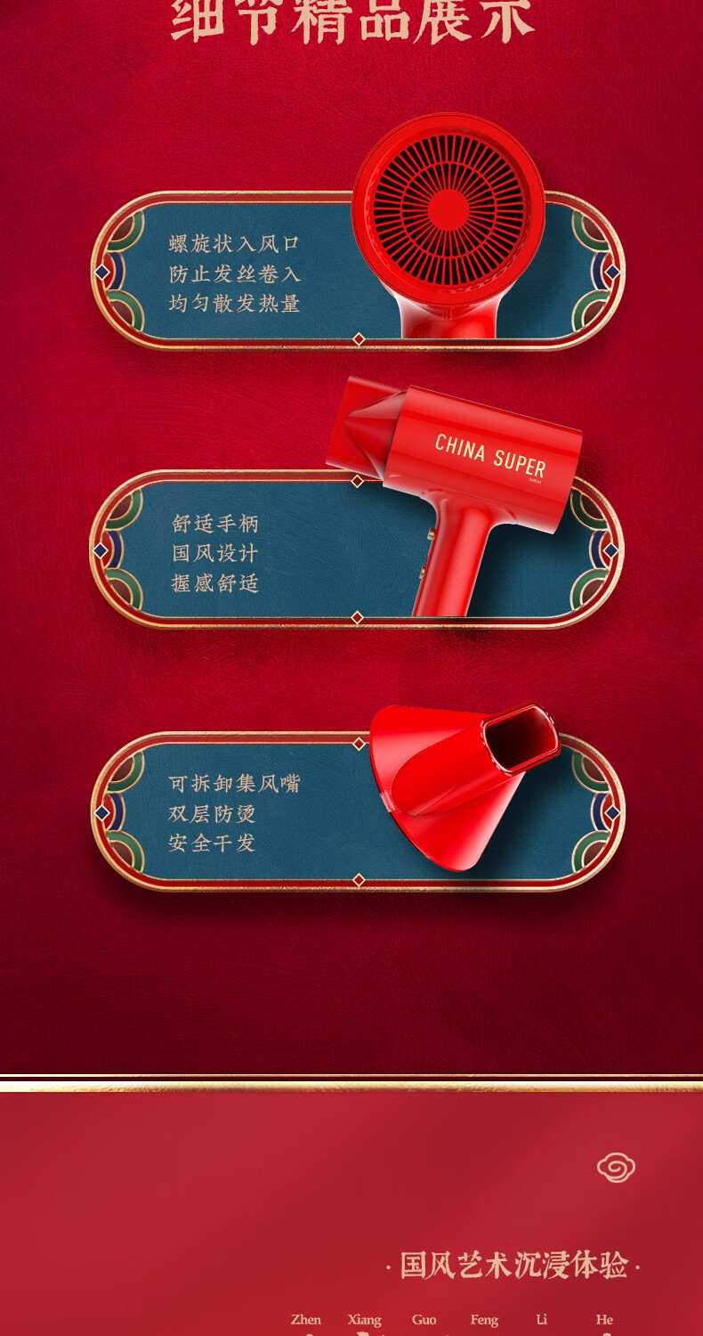 商品名称:(巨邦佑)BJ+Apiyoo艾优国风吹风机GF3 中国红国潮负离子吹风筒速干恒温1600W大功率
